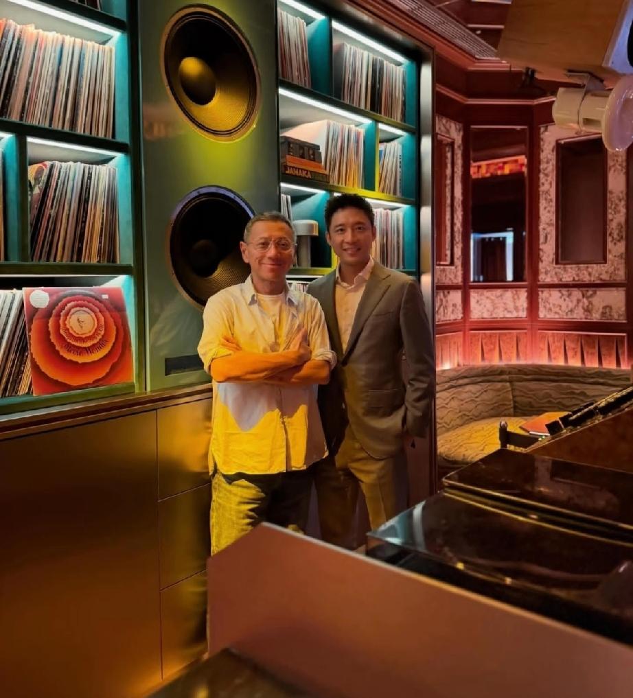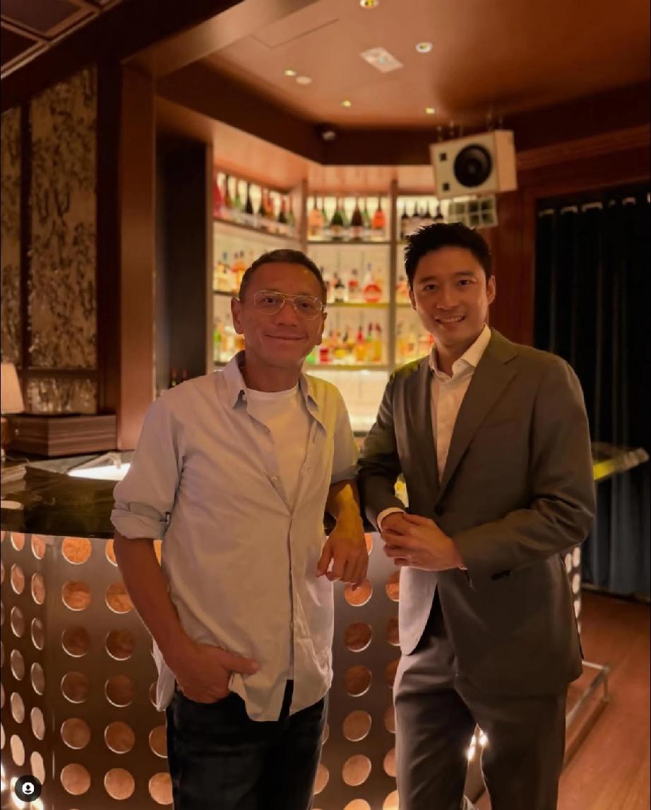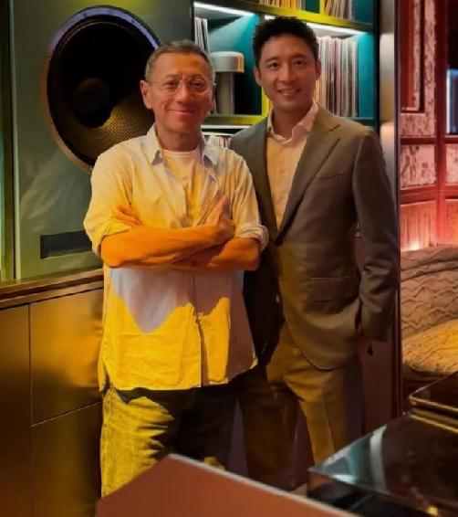 4月22日,霍启山捧场杨其龙的餐厅,二人年龄差了16岁,但像是好朋友一样,看来咖