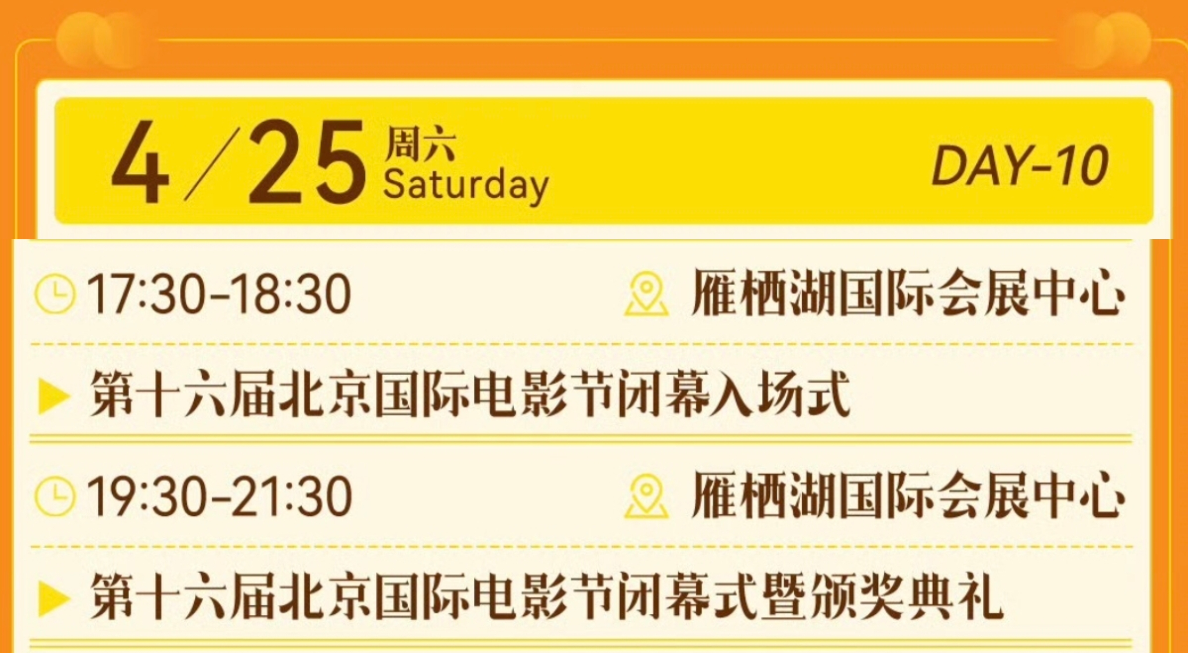 北京电影节闭幕式4月25号开始颁奖仪式从19∶30到21∶30结束大家别错过刘诗