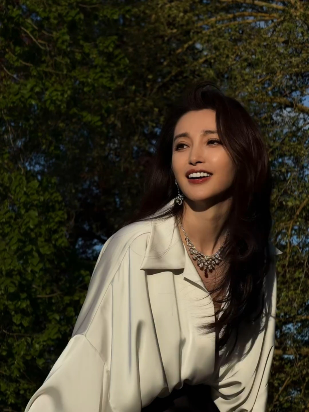 李冰冰春日氛围感李冰冰春日氛围感造型真的被李冰冰的氛围感狠狠拿捏了!春日树林间的