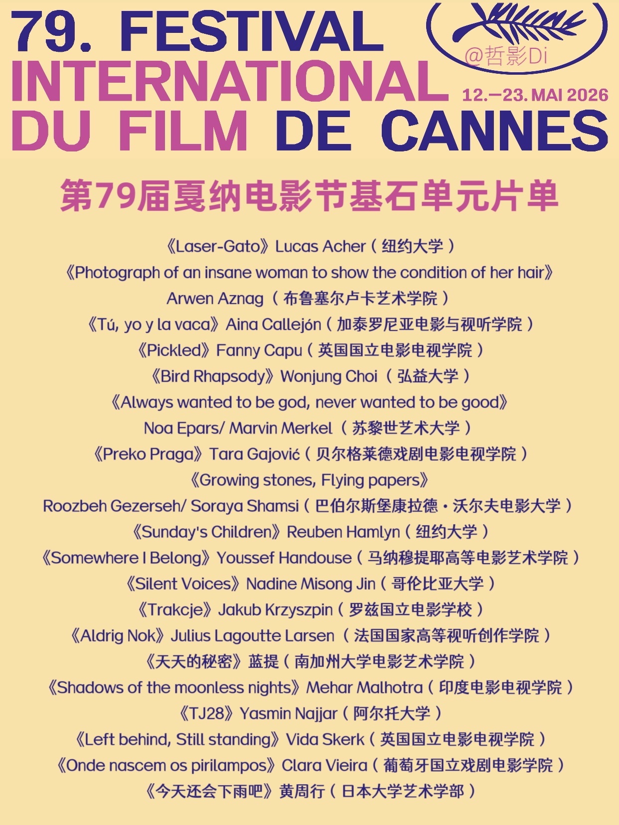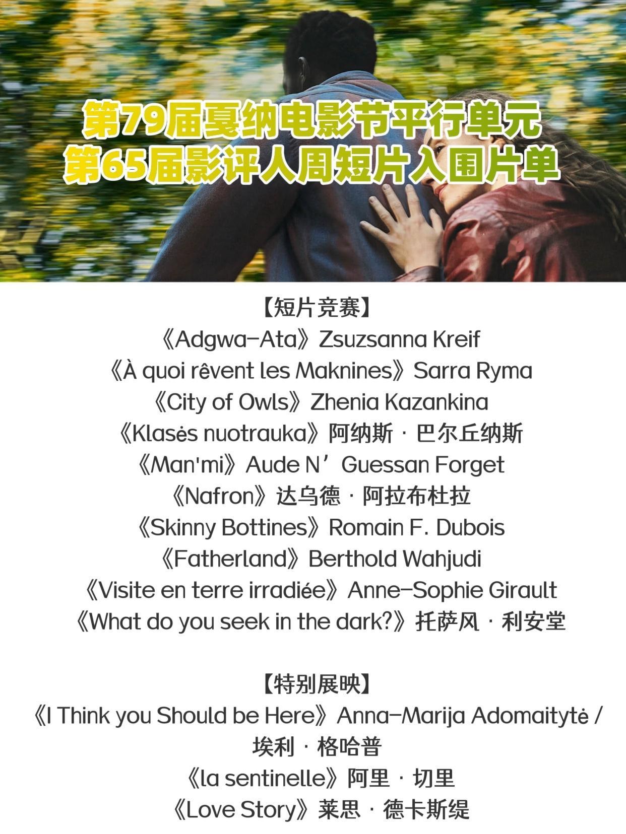 第79届戛纳电影节入围短片片单,有两部中国导演的短片入围了本届戛纳电影节基石单元
