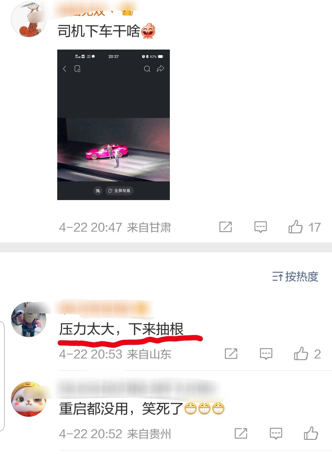哈哈哈哈,证据来了,这是直播最后的截屏,四辆车那个是?~~