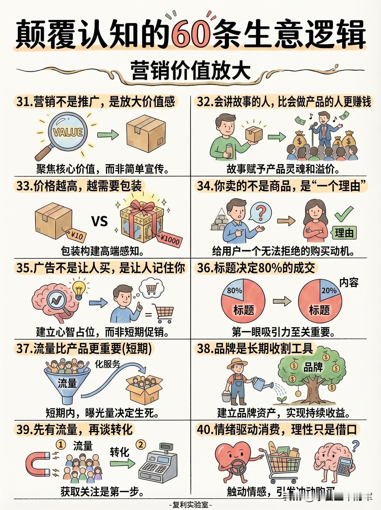 以前总觉得做生意就是拼努力、拼成本,直到翻完这60条生意逻辑,才发现真正赚大钱的人,靠的从来不是蛮力,而是底层认知。