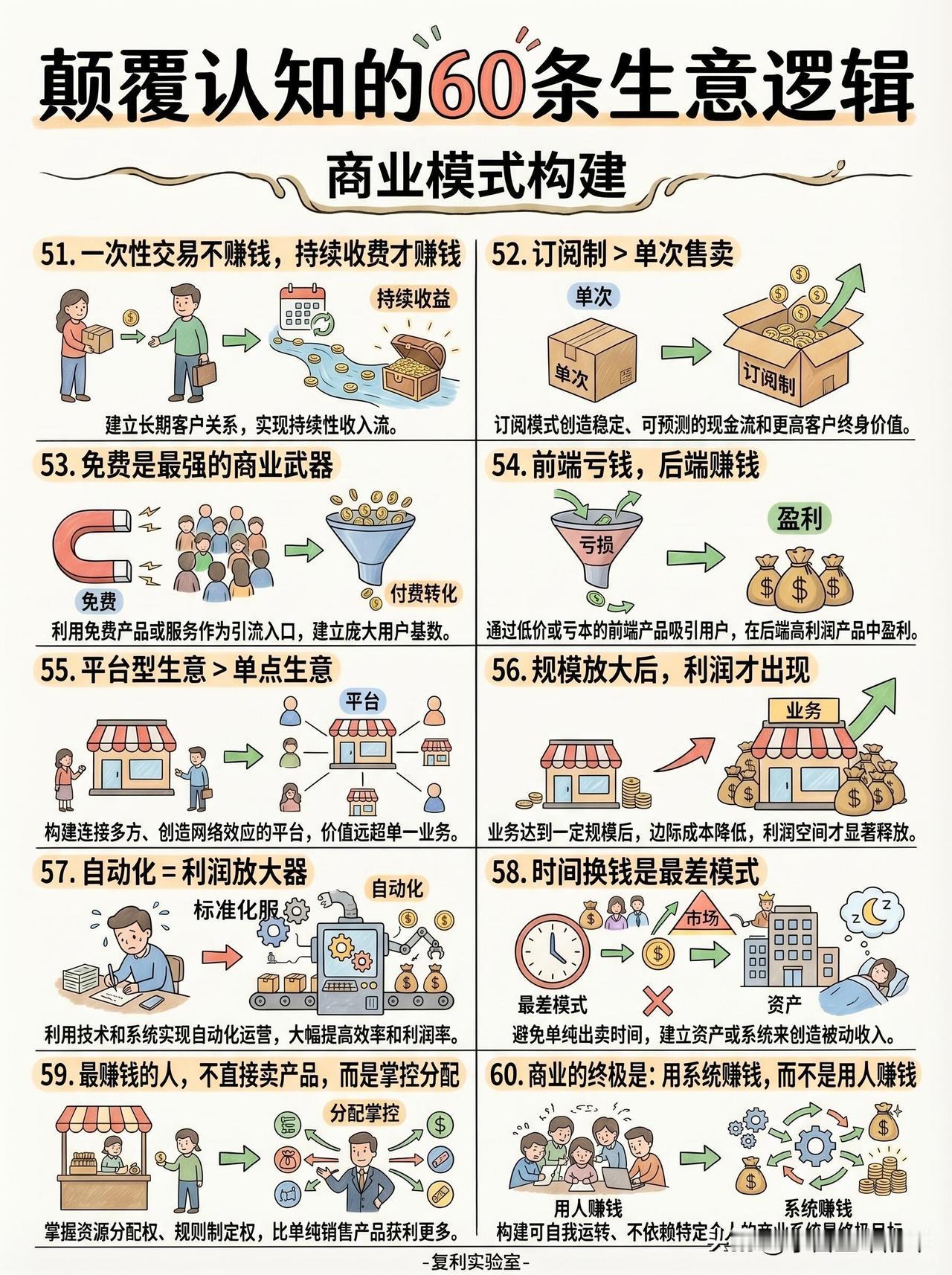 这些颠覆认知的生意逻辑,藏着商业世界最朴素的真相:赚不到钱,往往不是你不够努力,而是你的认知没有跟上。看懂这些,才算真正摸到了赚钱的门道。
