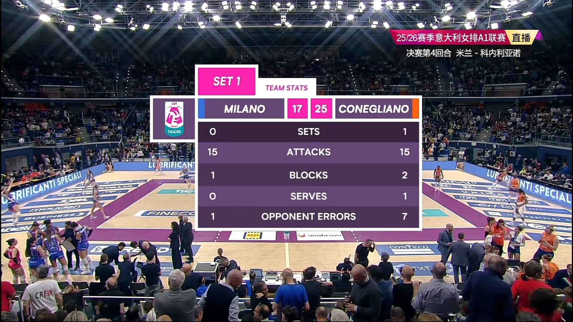 朱婷第一局2扣1中,哈克8扣7中1发,埃格努12扣6中。