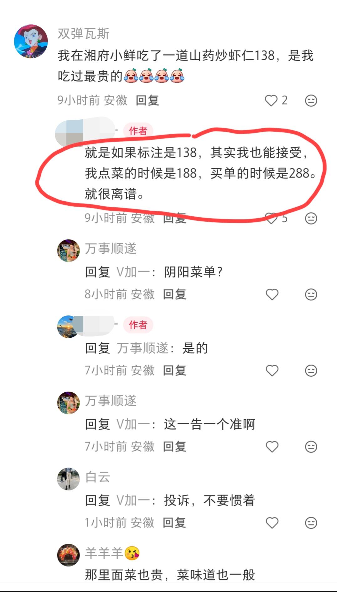 这位网友最气愤的就是酒店点菜的时候188,买单的时候却收了他288,这是最不能容忍的。