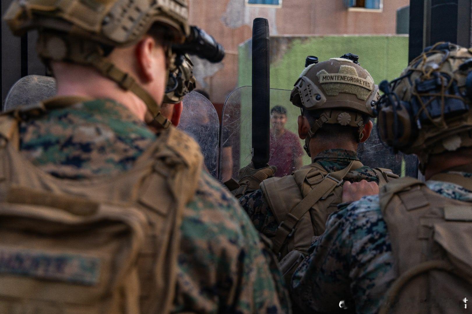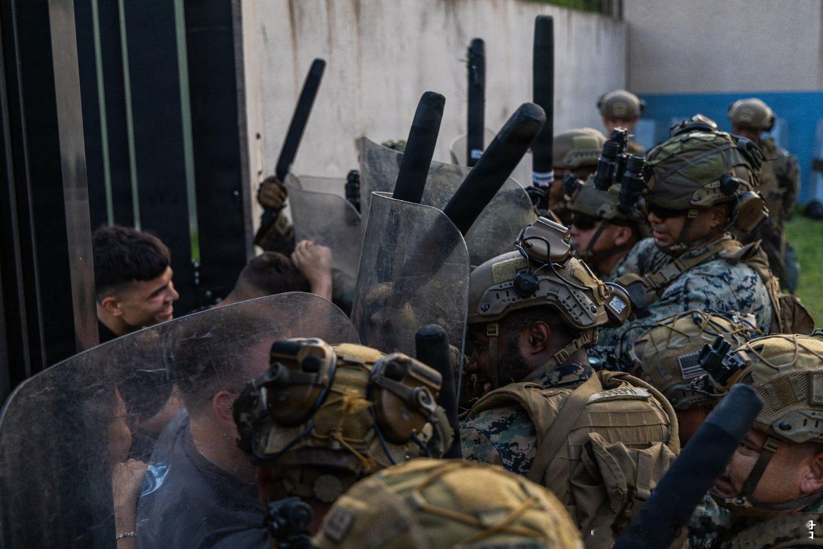 2026年4月14日,勒琼营,陆战2团3营进行使馆增援场景演习。