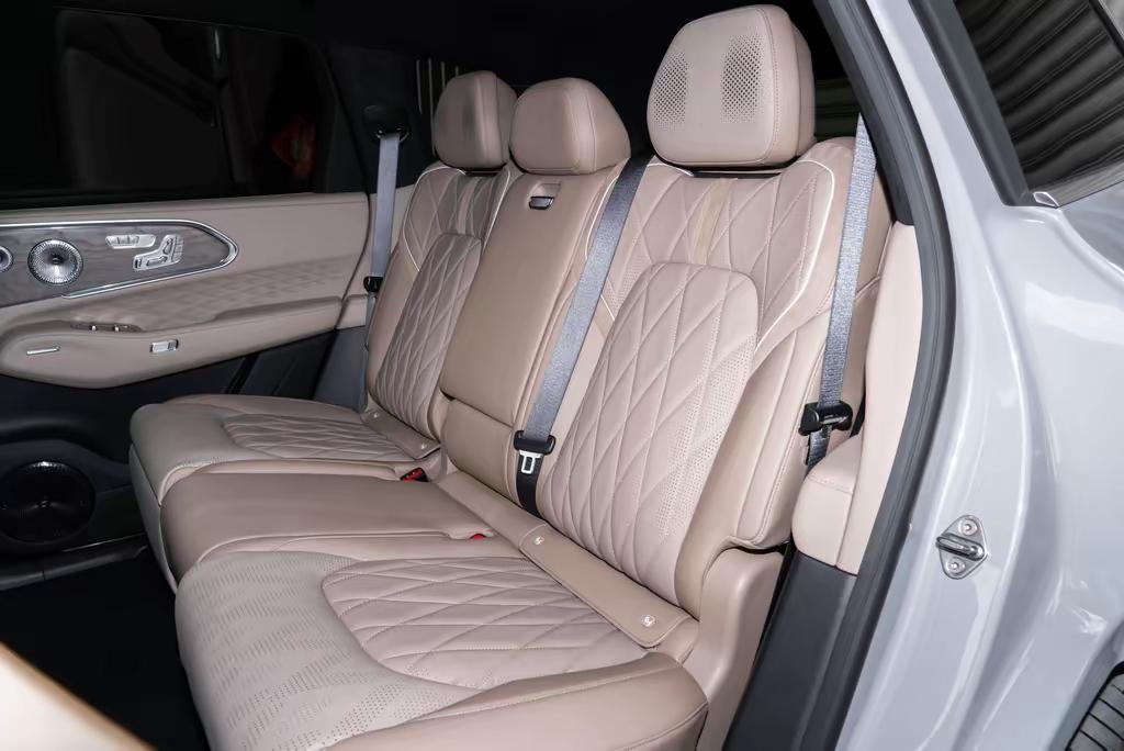 重点说开起来的感受。这车的动力就像是“核弹”,平时温柔开吧,它就是那种软绵绵、滤震超好的大沙发,双腔空悬把路面的稀碎震动全给你吞了。但只要你一脚“地板电”(运动模式),1400匹的马力瞬间就像有人在你屁股后面踹了一脚,而且是那种持续把你按在座椅里摩擦的感觉。最神奇的是,这车过弯居然不晃!销售说是因为那个48V主动防倾杆在作怪,高速过弯的时候感觉像是在轨道上跑,完全不像5米1的大车。