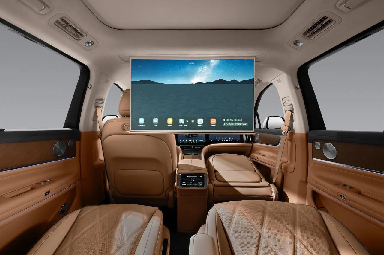 那个“双排零重力座椅”真的是……怎么说呢,像被一个温柔的胖子拥抱了一样。腿托抬起来,靠背倒下去,按摩一开,我当时差点在展厅里睡着。更离谱的是那个32英寸的投影幕布。放下来的那一瞬间,整个后排变成了一个私人影院。虽然分辨率只有1080P(对,不是4K,我专门看了),但在车里这个场景下,谁还纠结像素点啊?