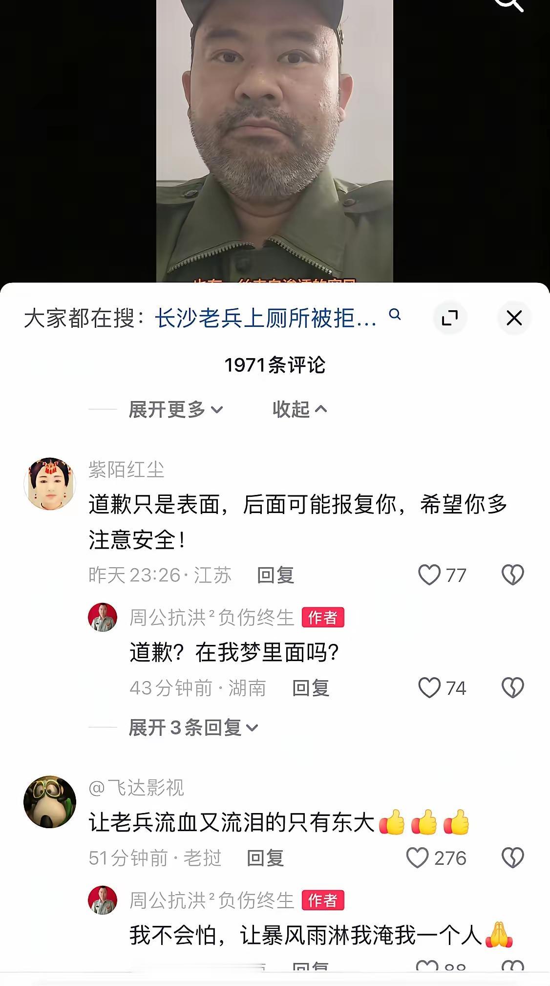残疾老兵借厕所被拒后续:为保安求情,真实诉求曝光,网友破防。 被拒上厕所的老兵发声了,他说保安只是个工具人,他的家人已经被威胁了,他说有什么事冲他来,他不希望自己的事情影响家人。 其实这件事可大可小,老兵要的只是自己能被公平对待。