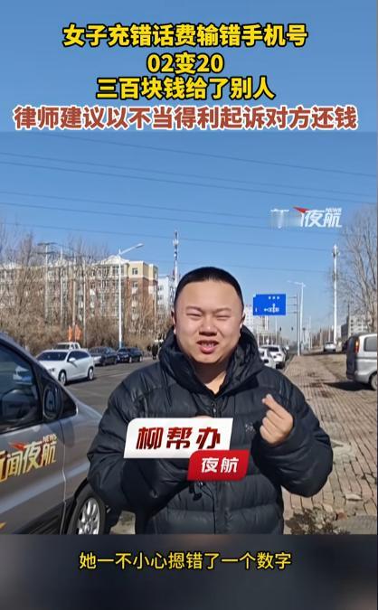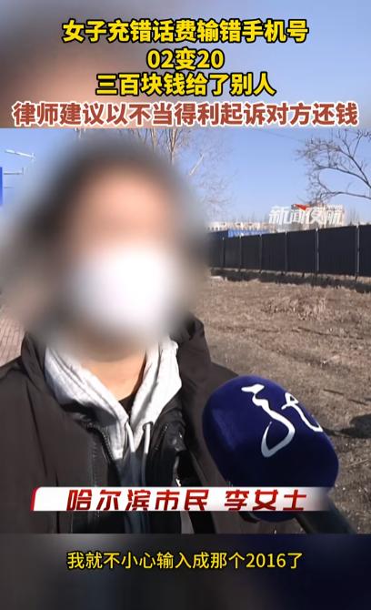 哈尔滨,一女子给父亲充300元话费,结果,她不小心将“0216”输成了“2016”,300元话费就充给了陌生人。她赶紧打电话、发信息给那个陌生人,说明情况后,她想让对方把钱退还给她,但对方根本不买账,直接把女子拉黑了。