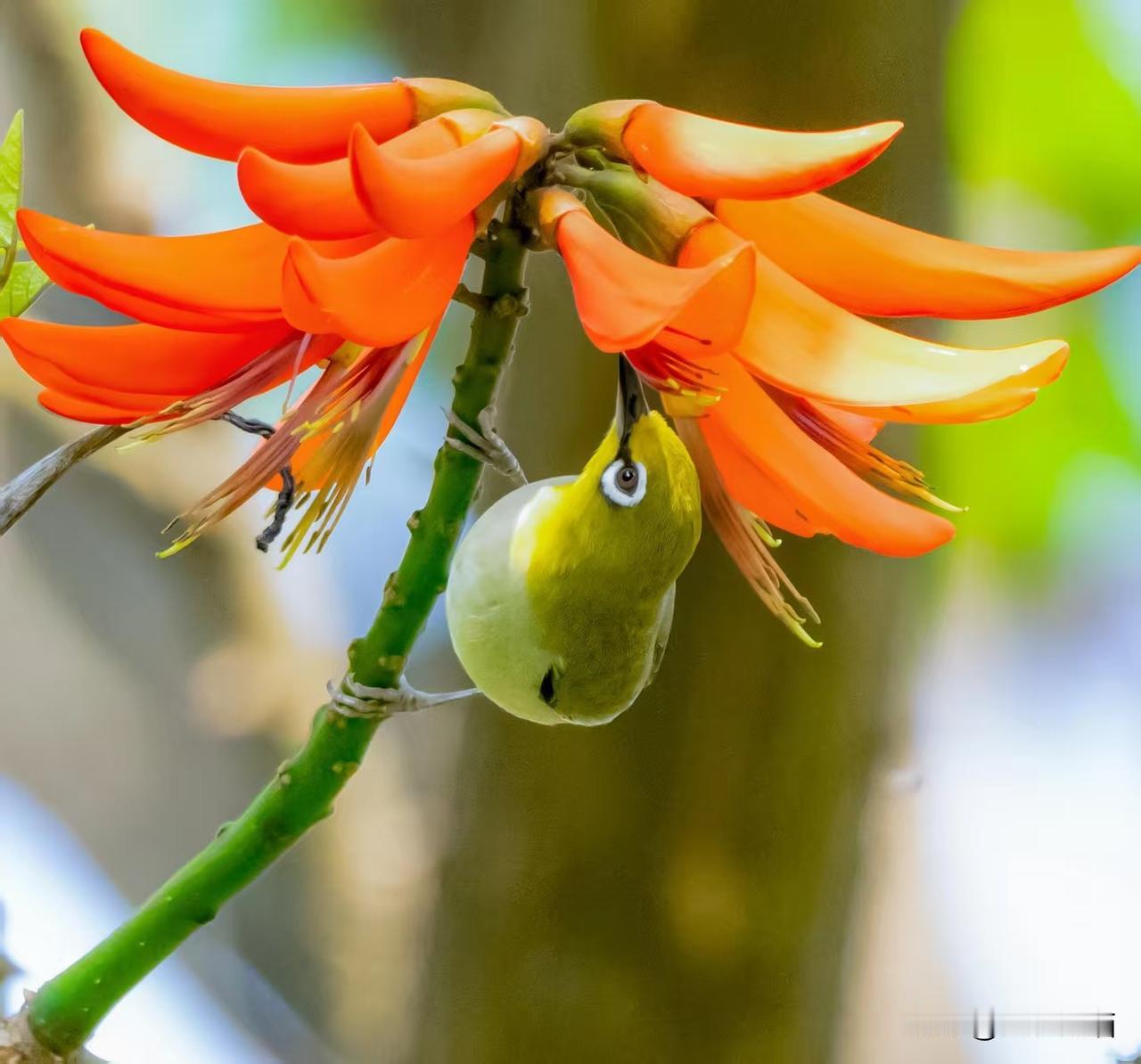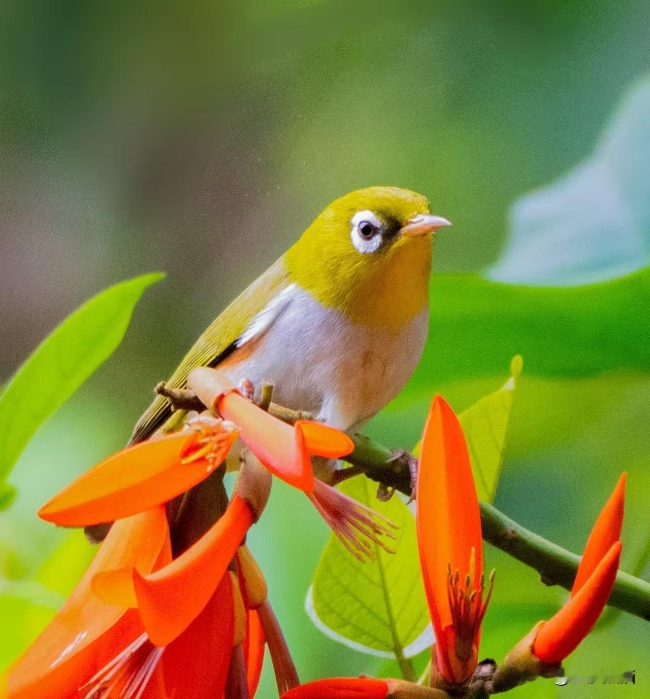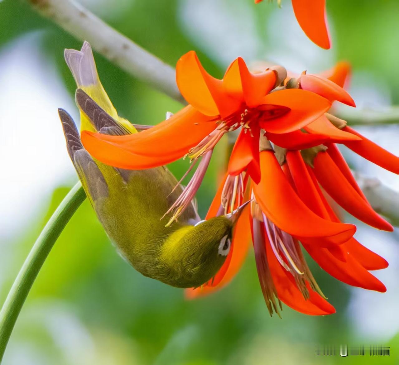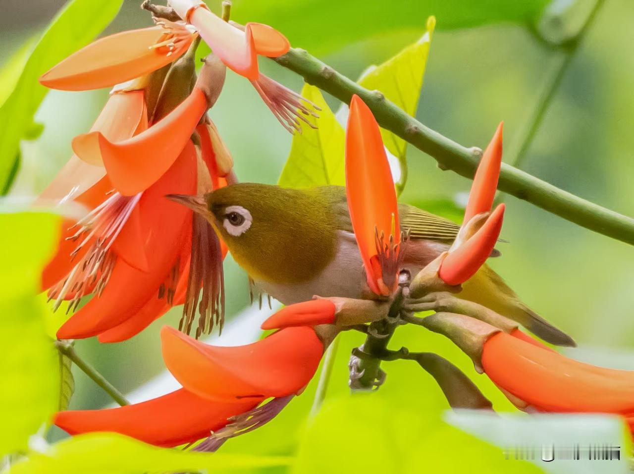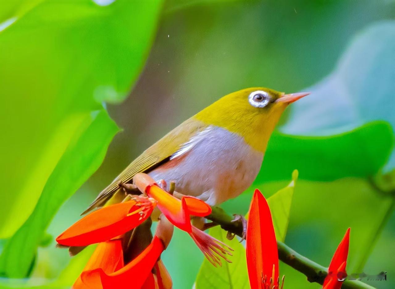 象牙红上的红胁绣眼鸟——近期植物园习拍。 成都市老年人协会攝影专委会 图文原创