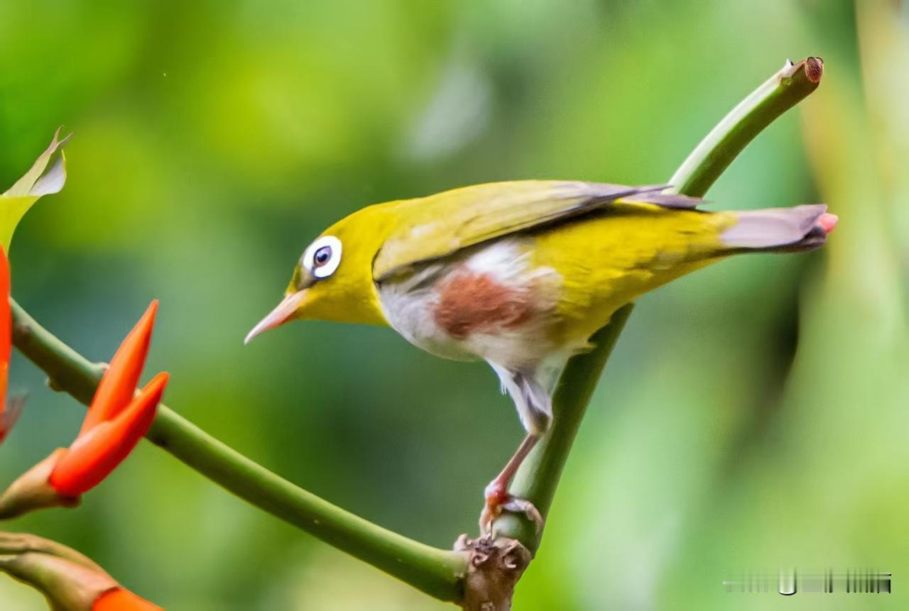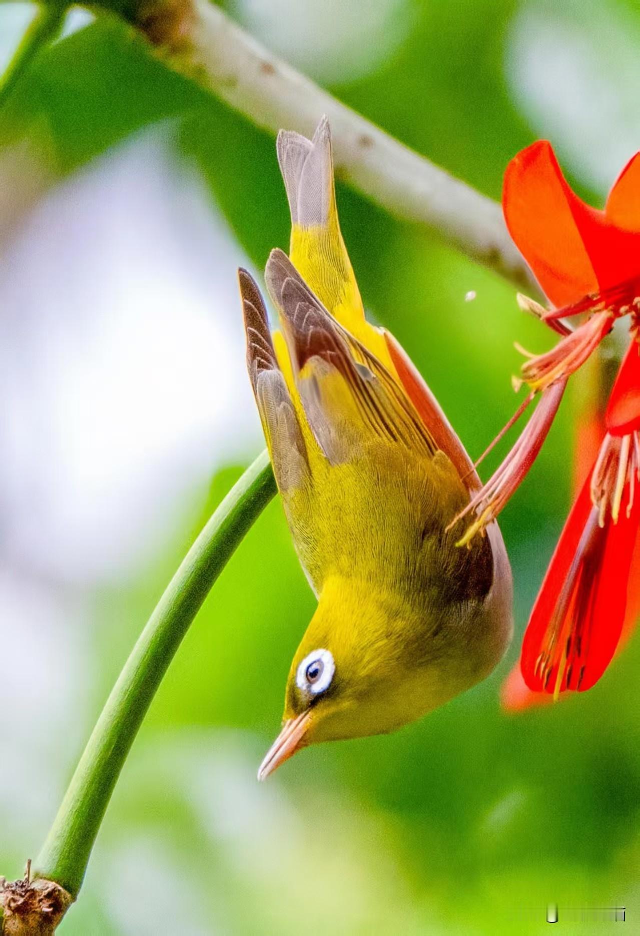 象牙红上的红胁绣眼鸟——近期植物园习拍。