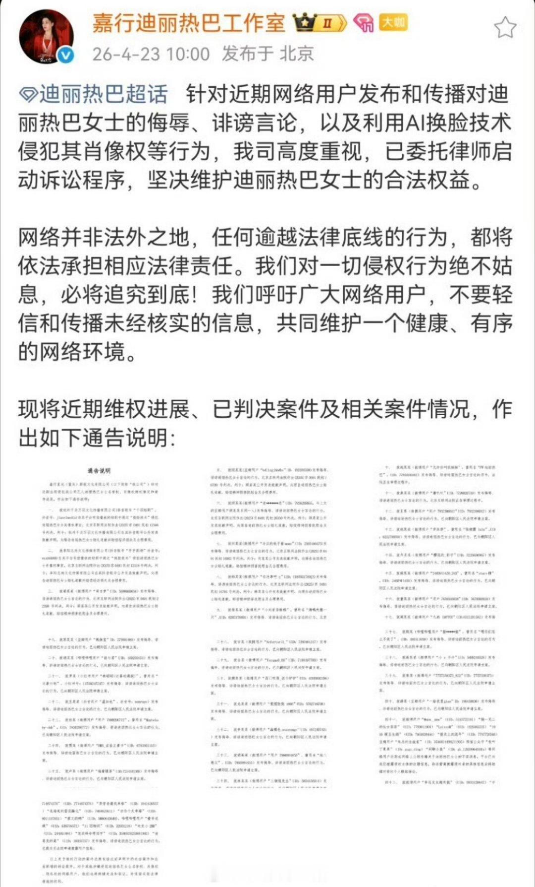 迪丽热巴全平台告黑,好多人啊