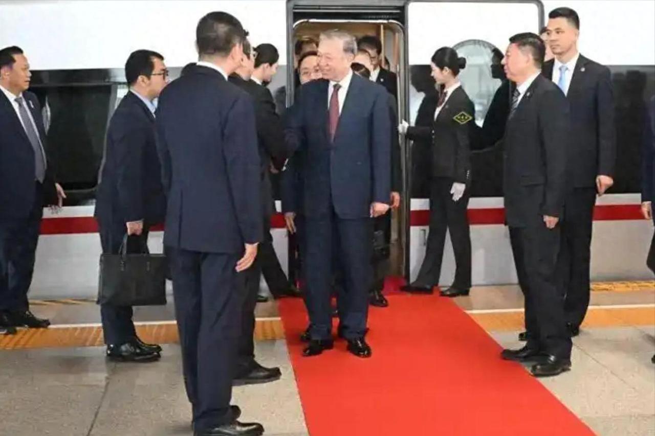 再看苏林这次访华,从北京到南宁两千四百多公里,放着专机不坐,非要坐复兴号。四个小时里两次乘坐,总时长接近十二小时,创了外国政要坐中国高铁的纪录。