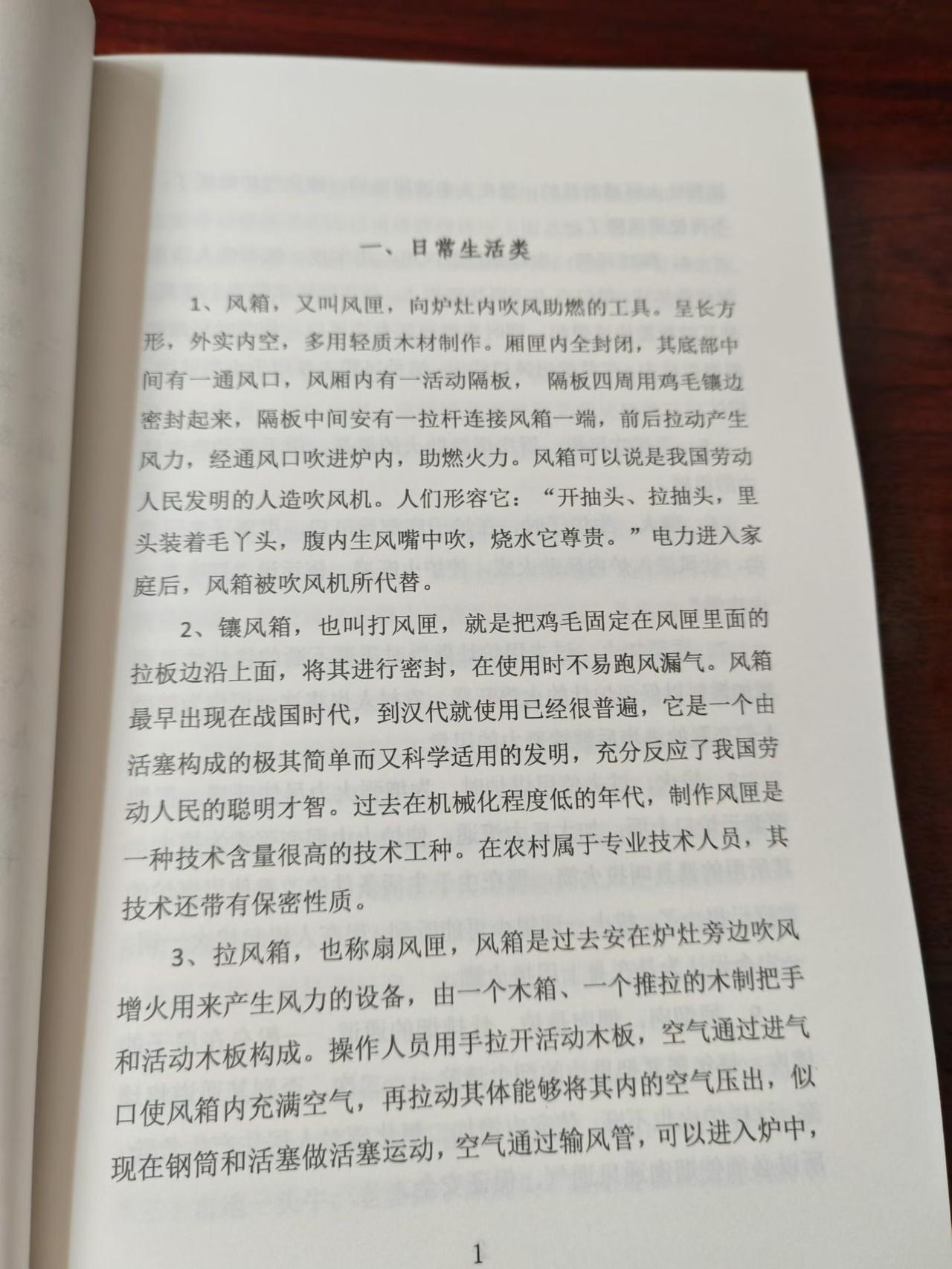 张殿伟先生在序言中指出,这是一部用语言构筑的巨厦,是民俗社会的一部“软性法典”,是消逝语境中的一个精神“锚点”,是守护传统文明的一道传统“语码”。展卷遐思,那一个个似曾相识、却又蒙董迷离的“老话头儿”所指代的“老物件儿”,令人浮想联翩,感觉了历史的遥远与深邃,历史回声的空洞之鸣与绵缈悠长。有老谚老话 老感土话 老话头 西彭老话 王一民居典 王明村窑头节