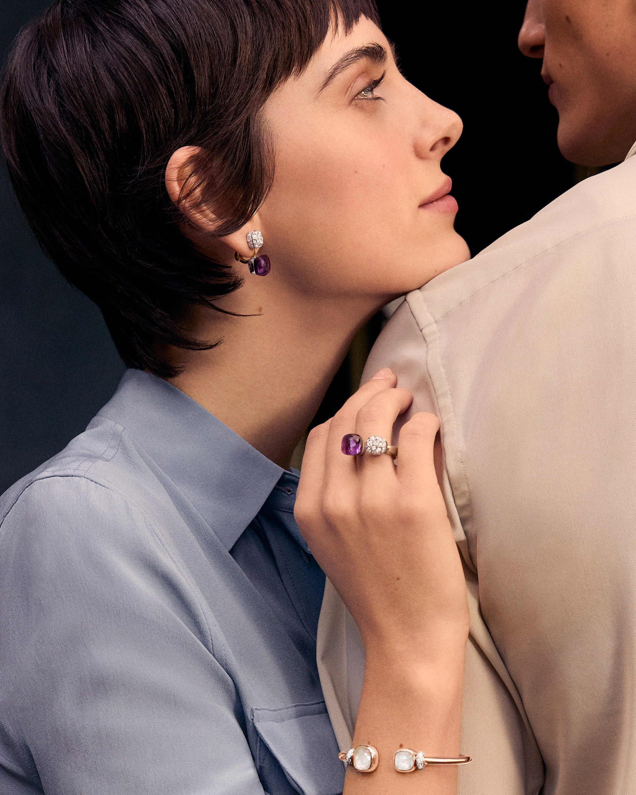 说到该系列最想收藏的,是Nudo Toi et Moi戒指——紫水晶与镶钻宝石相拥,完美致敬个性对话。日常佩戴首推绿水晶搭配绿玛瑙的双面宝石项链,单戴清雅,叠搭璀璨,与佩戴者缔结一份静谧而亲昵的联结 ✨
