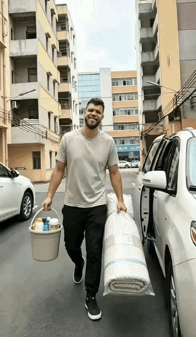 杜锋终于笑了,那个高个子提着桶和床垫进厂了图⑤