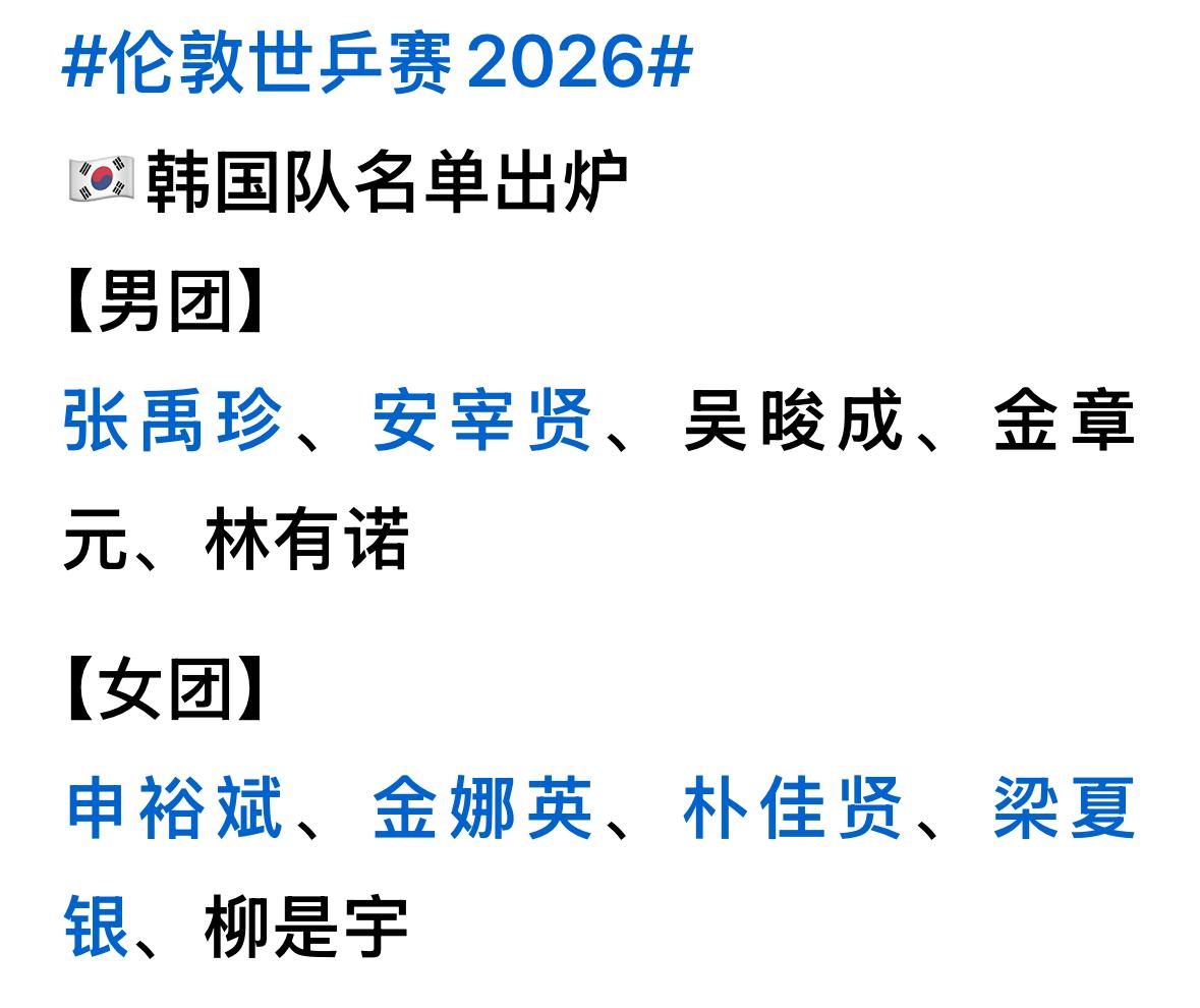 伦敦世乒赛,韩乒男团的参赛选手是