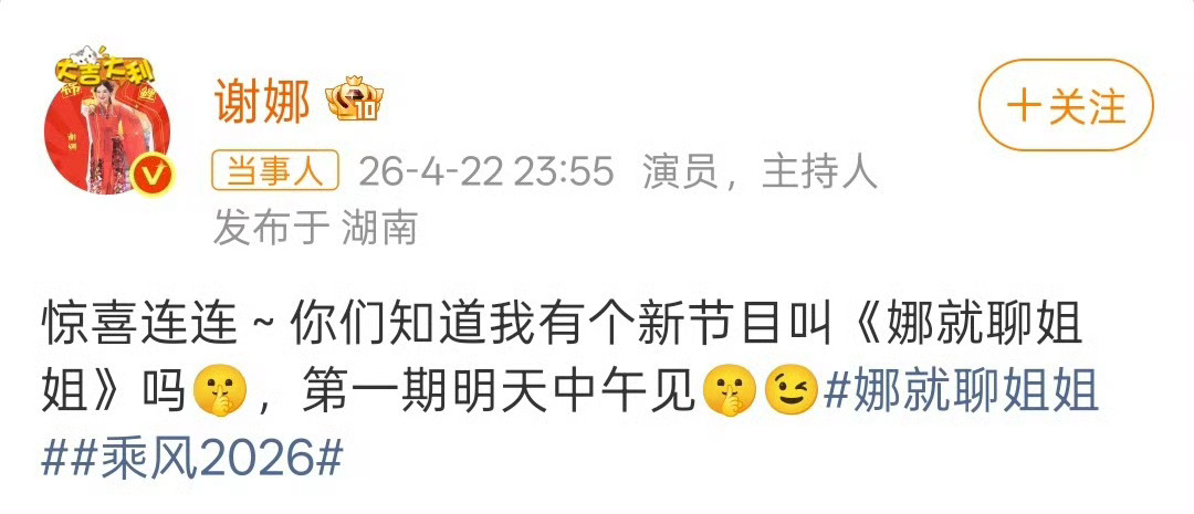 娜就聊姐姐乘风2026衍生新节目来啦!谢娜的《娜就聊姐姐》马上上线✨ 和姐姐们唠唠心里话,超多舞台外的暖心故事乘风直播乘风2026