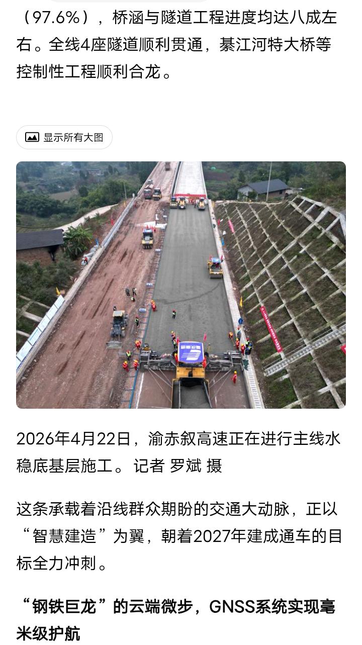 直达高速,重庆途经贵州赤水至泸州叙永正在建设一条直达高速,目前重庆段的65公里桥隧工程基本完成,目前全线正在大面积铺设路面沥青,预计2027年内可以建成通车,贵州赤水段全长约6.4公里的旺隆隧道、全长约1.6公里的石笋特大桥、全长约538米的赤水河特大桥等重点控制性工程均在热火朝天的建设中,四川合江和叙永段部分路重点工程也于今年相继开工建设,未来全线建成通车后重庆开车来往赤水和叙永还有兴文等地将更加便捷,沿途多个乡镇将结束不通高速的历史,渝赤叙高速也是重庆开车来往云南昭通和昆明等地最便捷的通道。