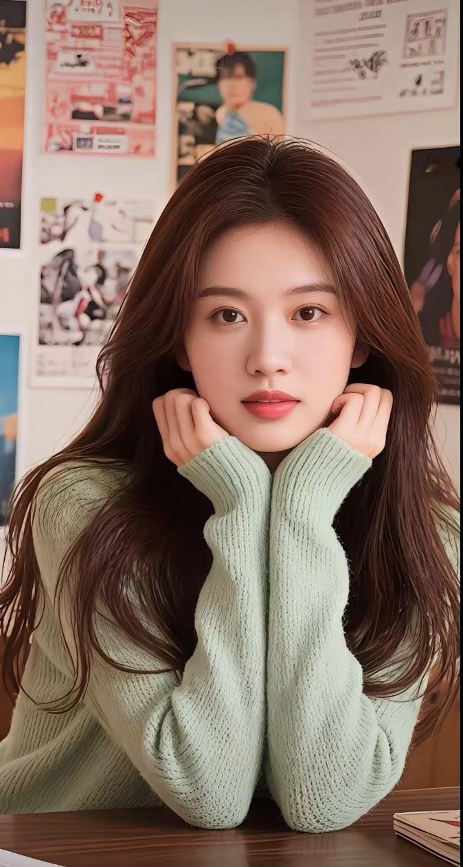 温柔如水的少女,浅绿色纱裙飘逸动人