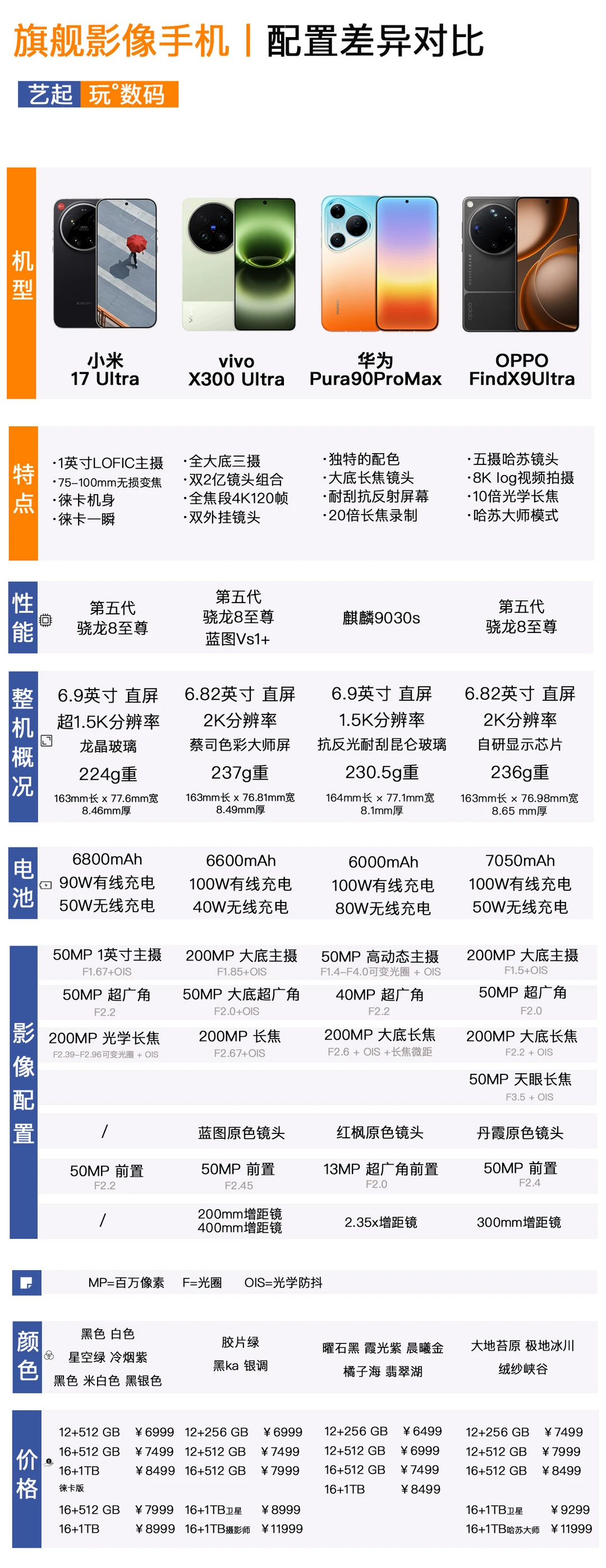 📱OPPO Find X9 Ultra,唯一五摄组合,唯一保留拍摄键的影像旗舰,大地苔原的外观很哈苏颜值是没得说,双2亿的镜头组合也是顶配,这次超长焦镜头到了10倍原生光学,画质是所有旗舰里面数一数二的,当然起售价格是四款中最贵的。