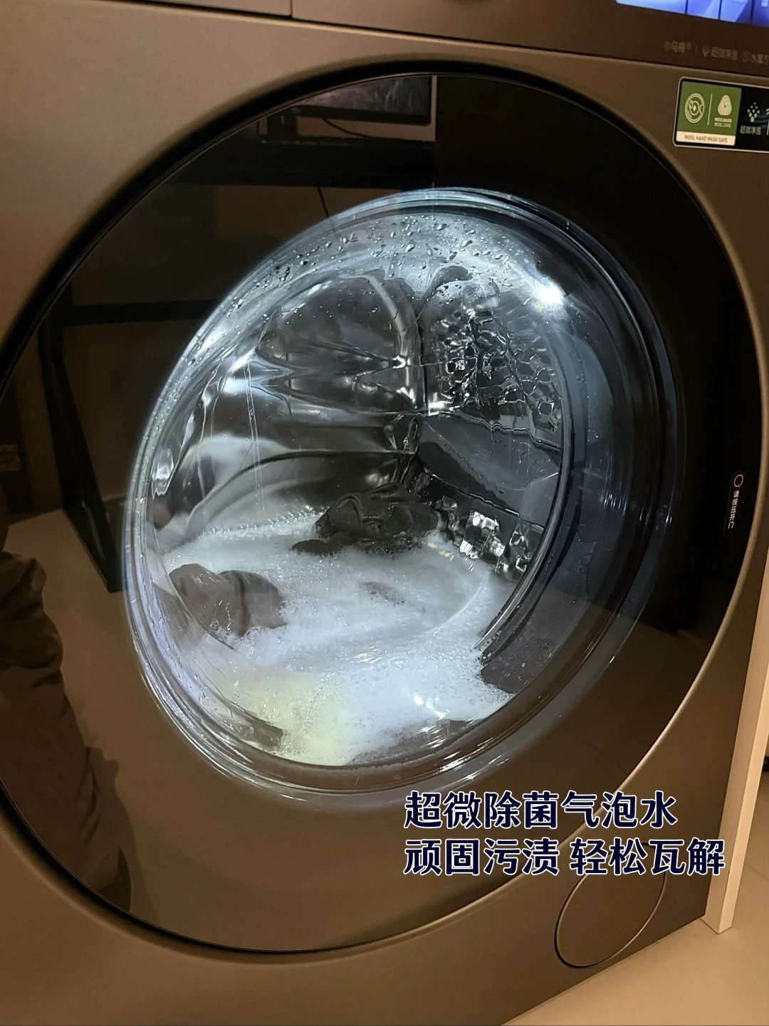 小天鹅的超预洗系统加上超微除菌气泡水能深入纤维清洁