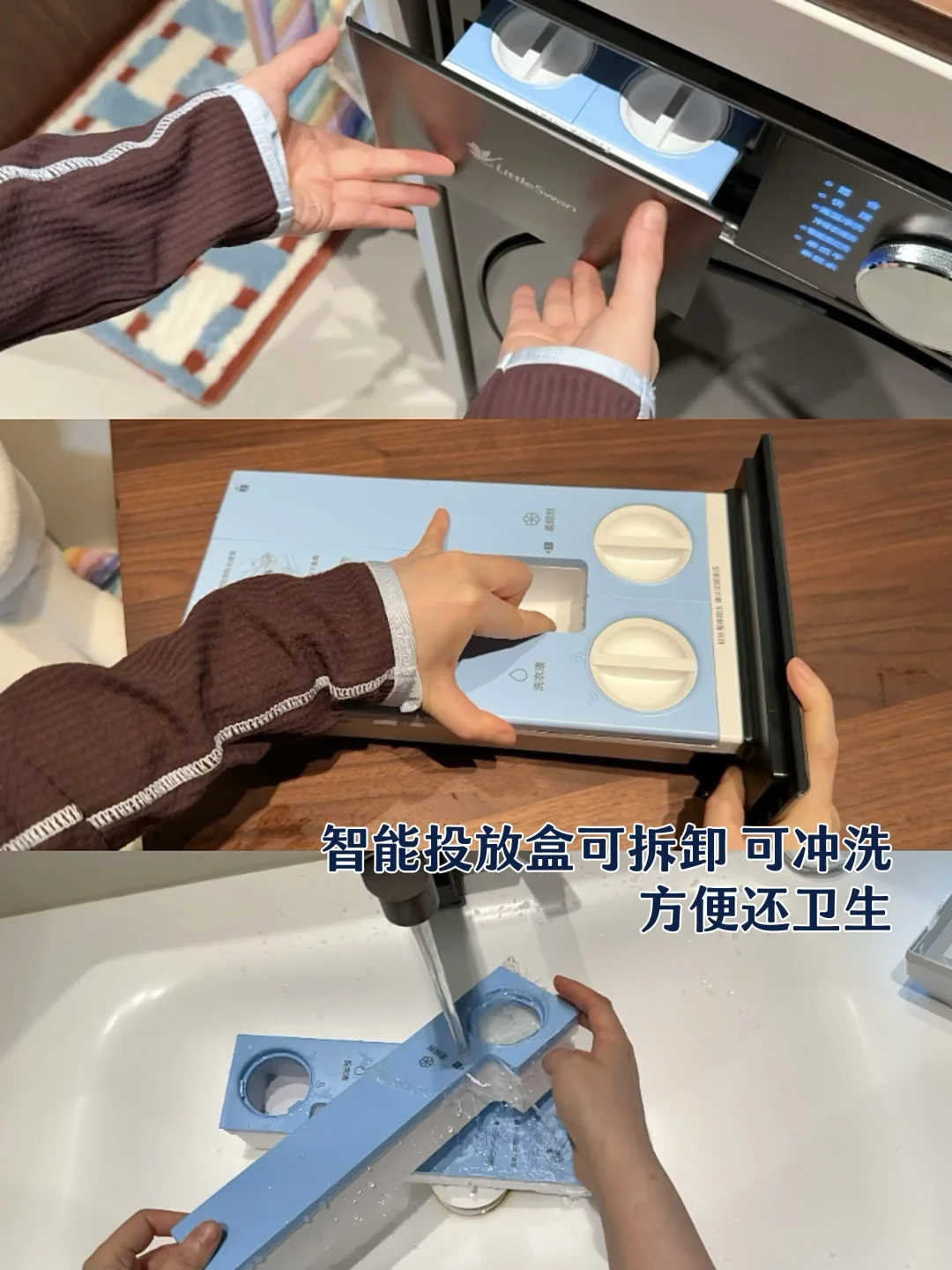 最惊喜的是它的智能投放盒是可以拆出来清洗的