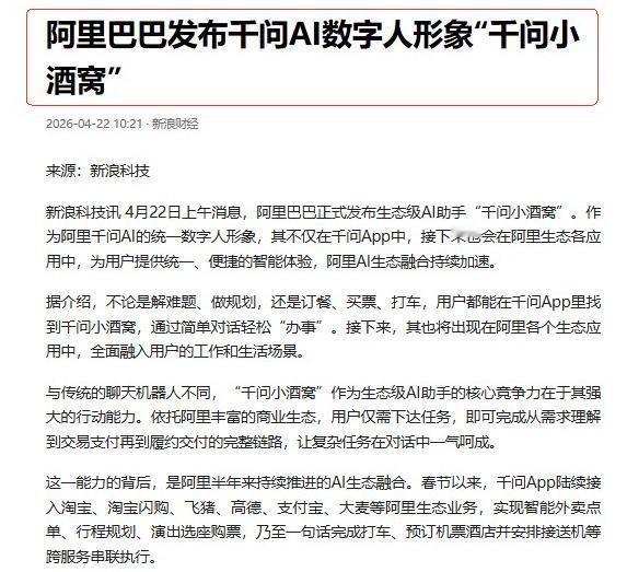 这微笑背后,是阿里的狠招:整合ATH事业群后,AI开挂狂飙——4月连发三款旗舰模型,上个月又祭出视频神器HappyHorse和世界模型HappyOyster。小酒窝既是温柔助手,更是商业闭环的终极武器:她推荐的每条服务,都暗藏引流生态的野心。