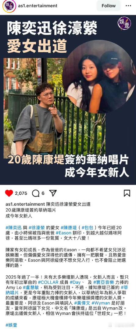 曝陈奕迅带女儿上音综国粤无双 当国粤无双遇上“父女情深”,如果女儿想唱国语,Eason是不是得乖乖在一边用粤语和声?这个画面想想都太有爱了
