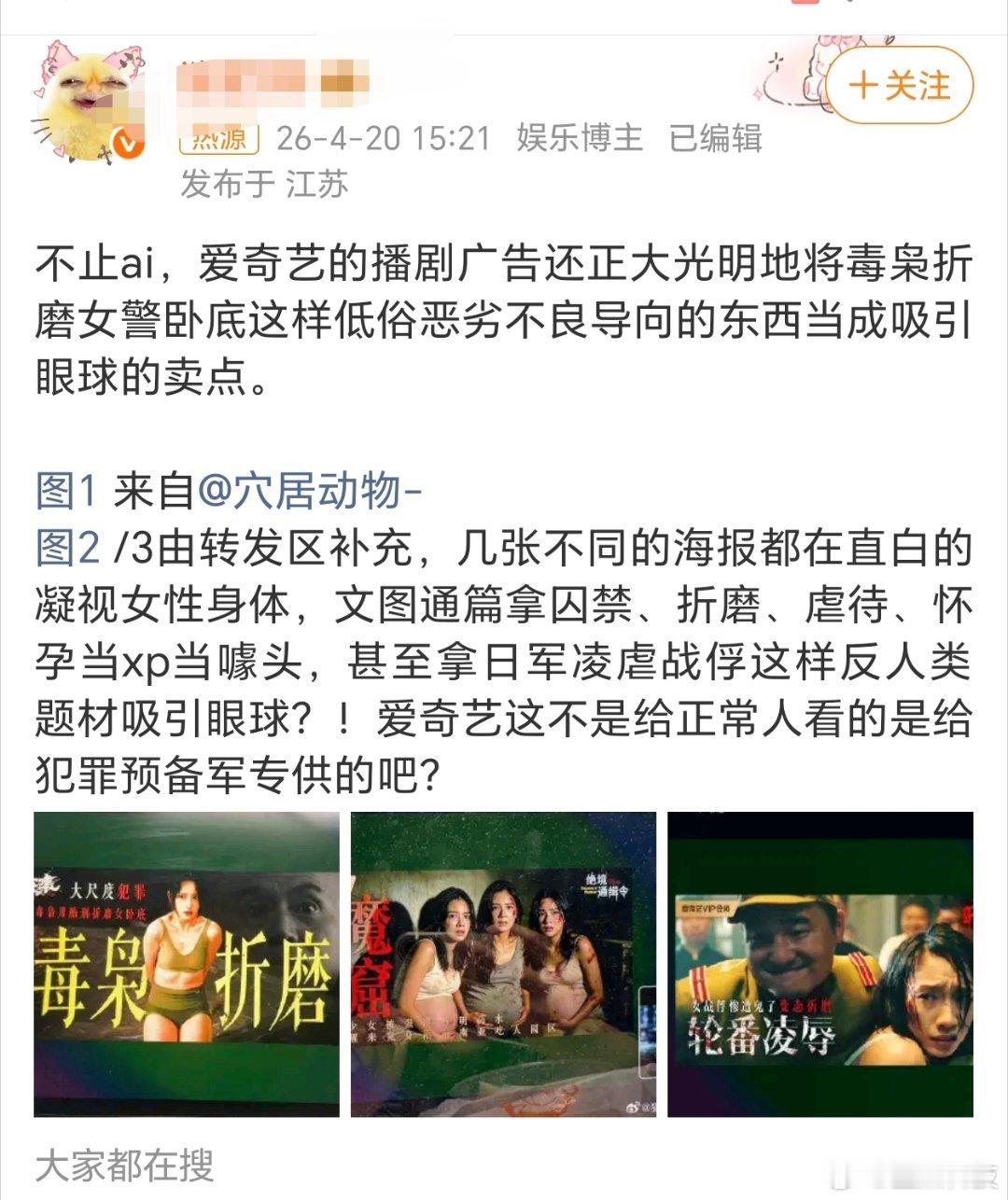 爱奇艺广告尺度爱奇艺你是真不想混了!!你是正规平台,不是乱七八糟的网站,你要吸引人的封面也要有个度吧????
