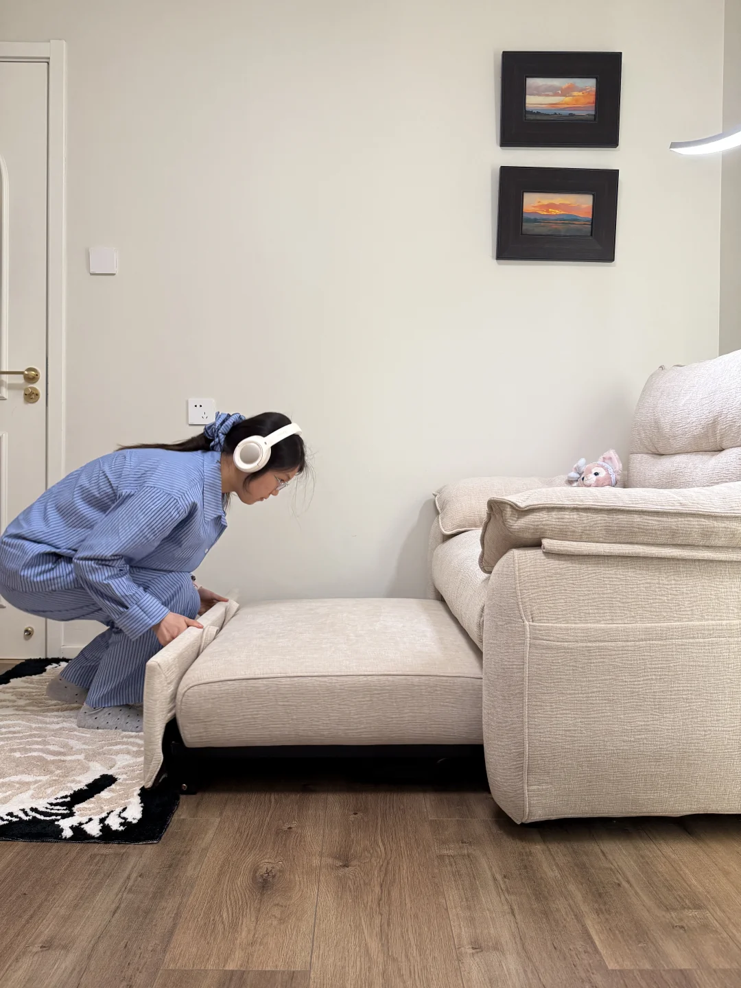 65cm大坐深,5档靠背可调节,坐累了可直接拉成沙发床