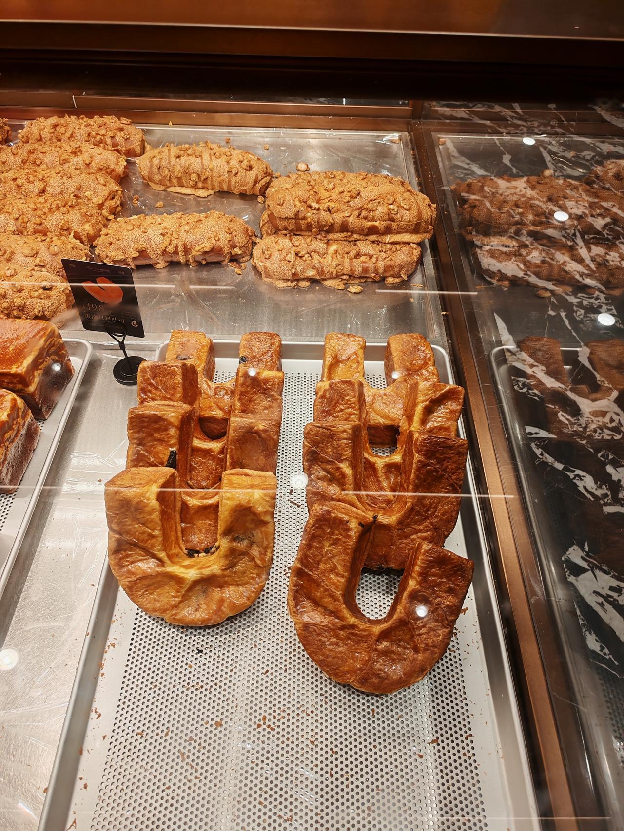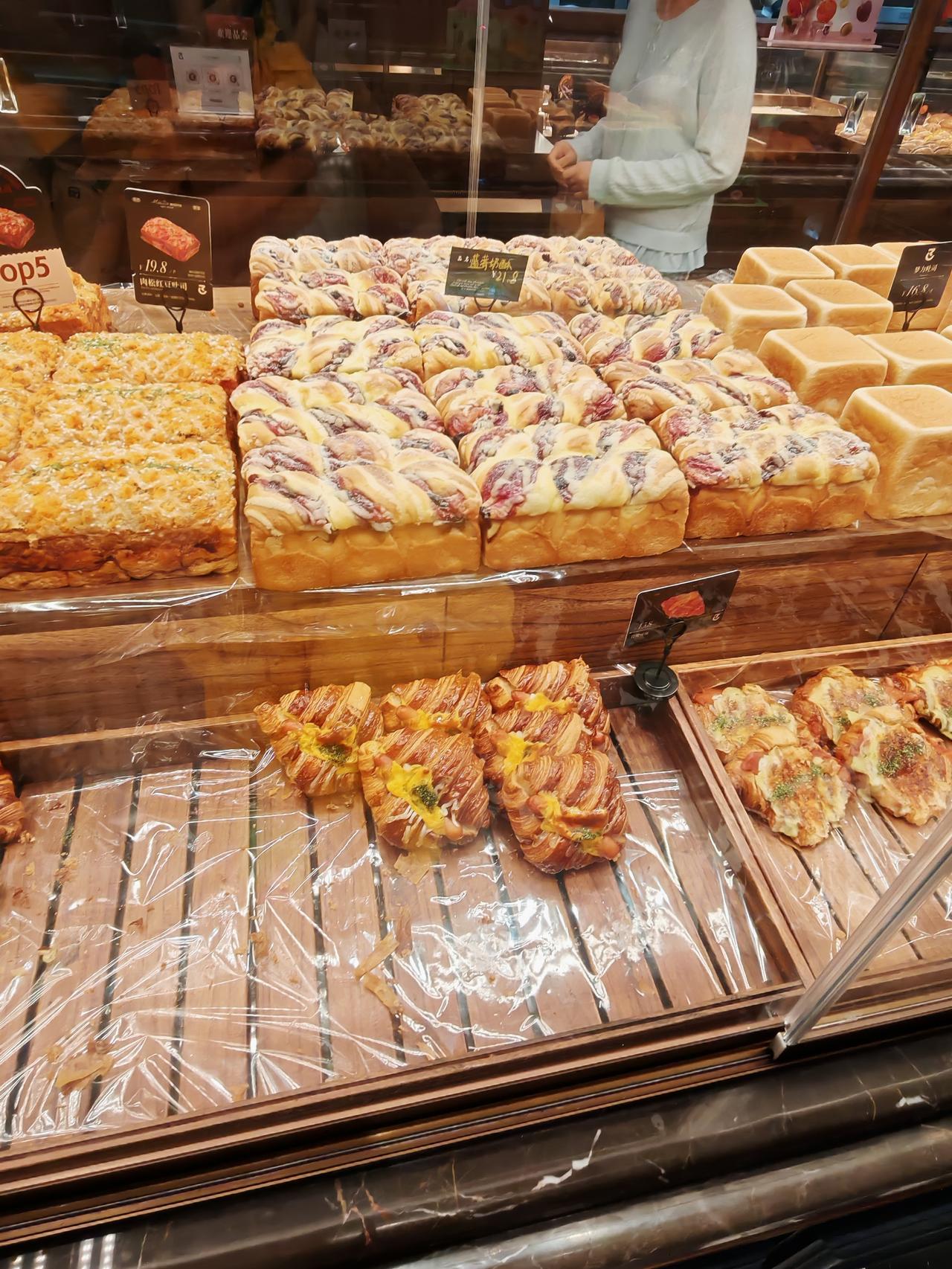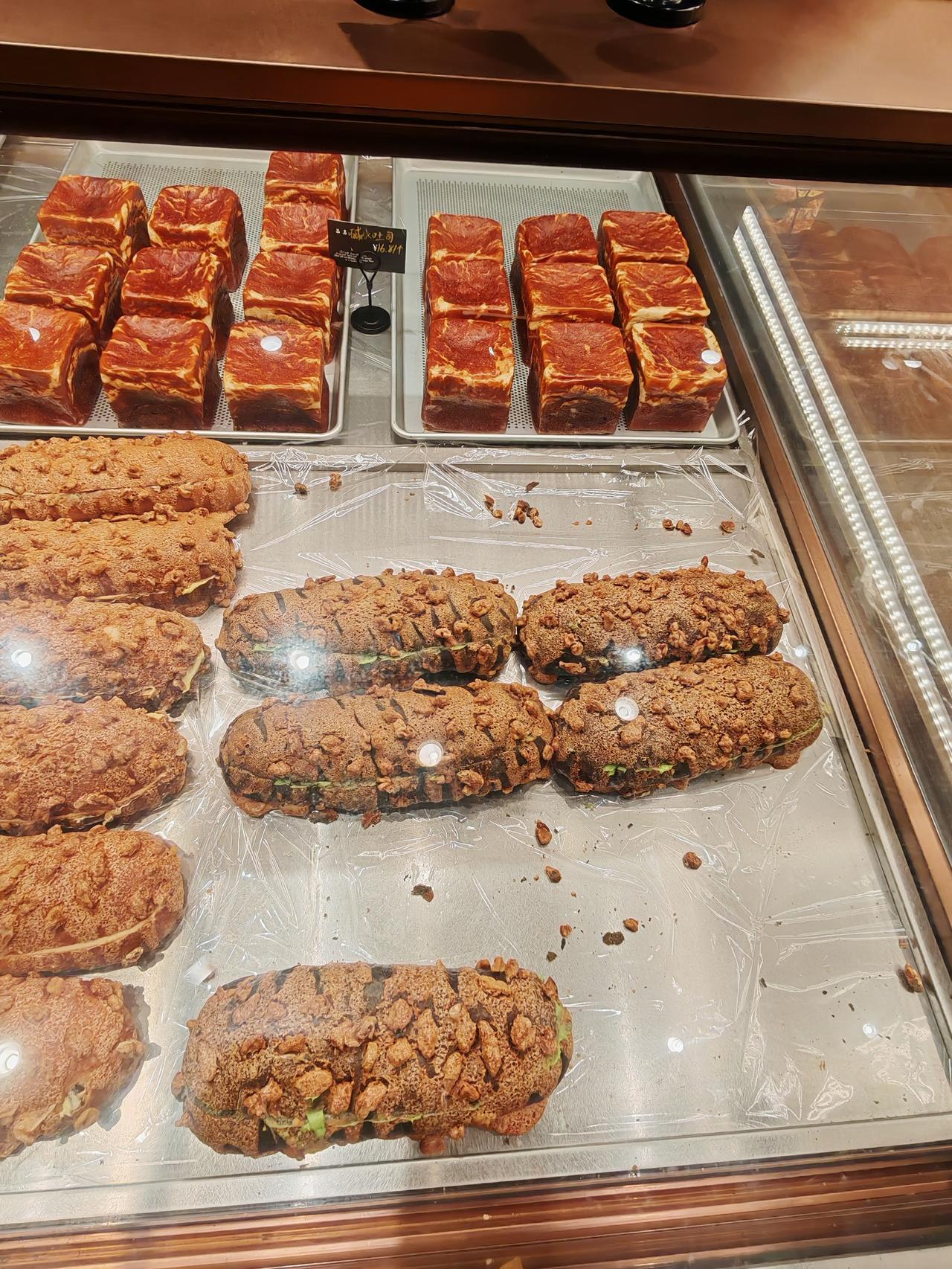 满满果酱的菠萝包,买二送一,正好三个口味,分切开来,每一种都尝一尝,我喜欢菠萝风味的清爽! 这家面包工厂的品类很多,而且有各种试吃,黑金马里奥用料很足,里面满满都是开心果酱!