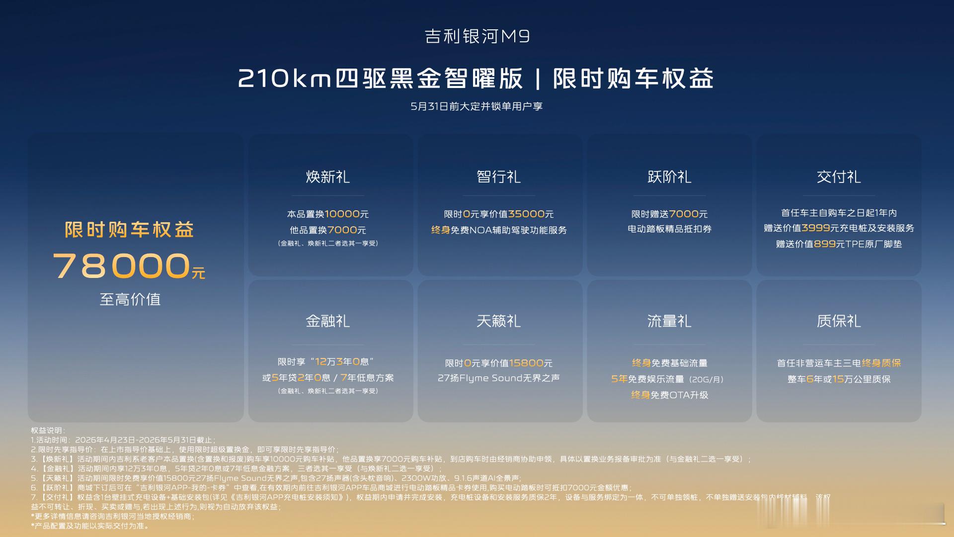 4月23日正式上市的吉利银河M9黑金智曜版,以25.98万元限时先享指导价给出了破局答案:爆款的真正进阶,从来不是向下妥协,而是向上生长。