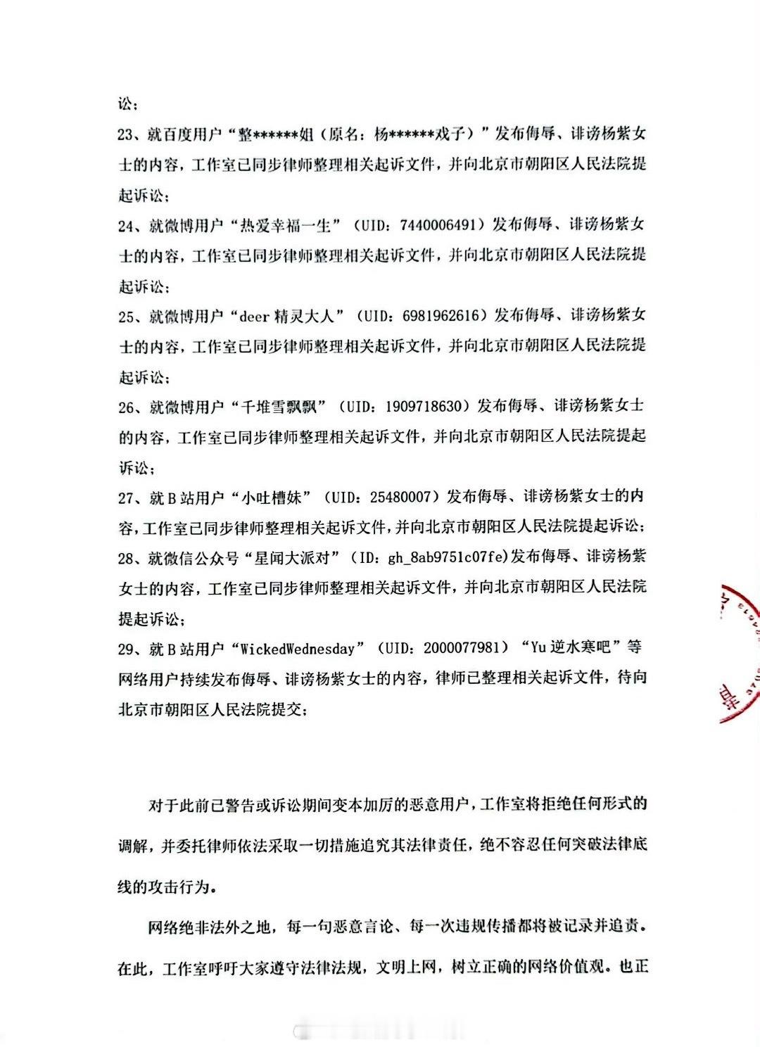 杨紫工作室公布告黑维权声明,支持维⭕