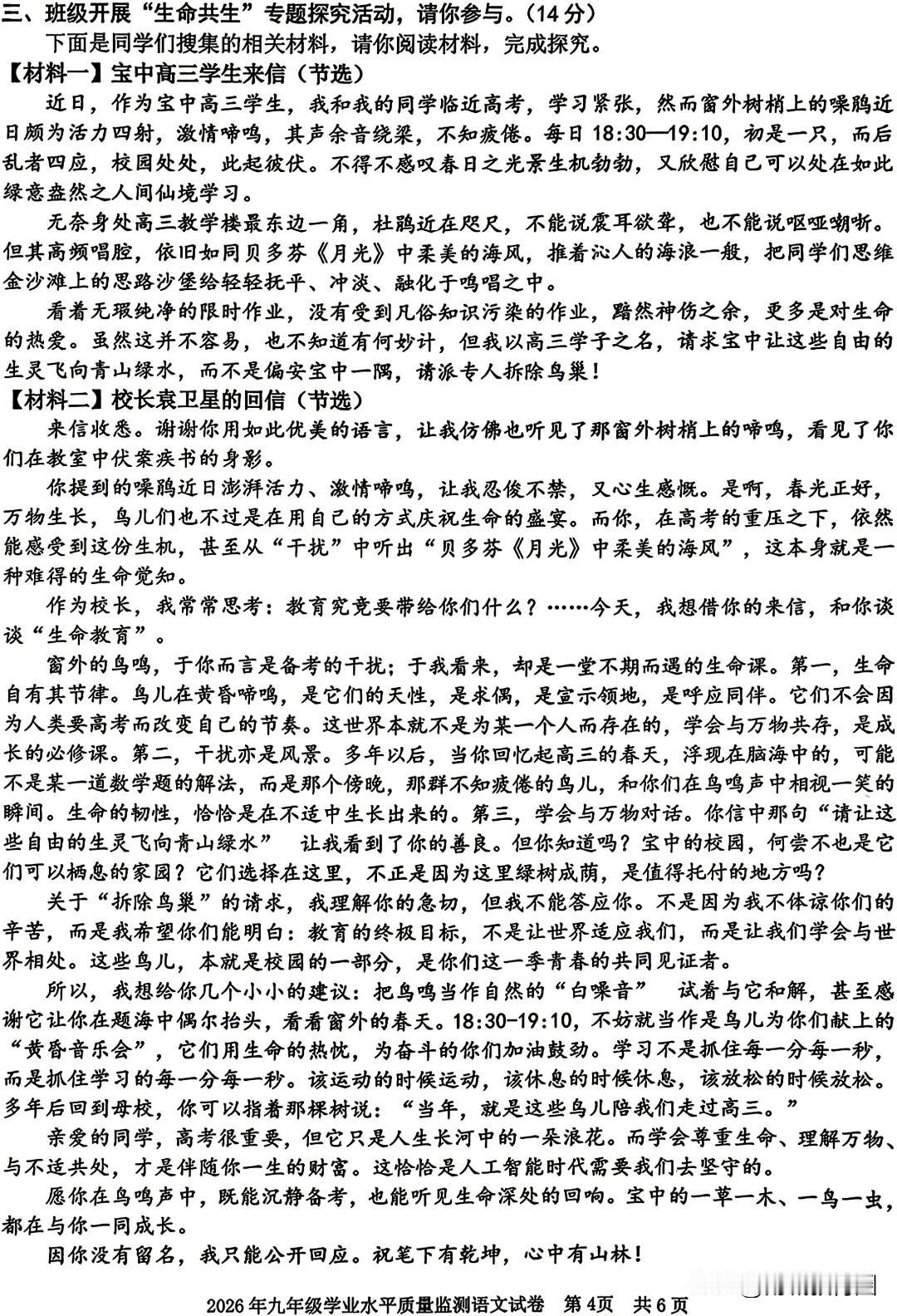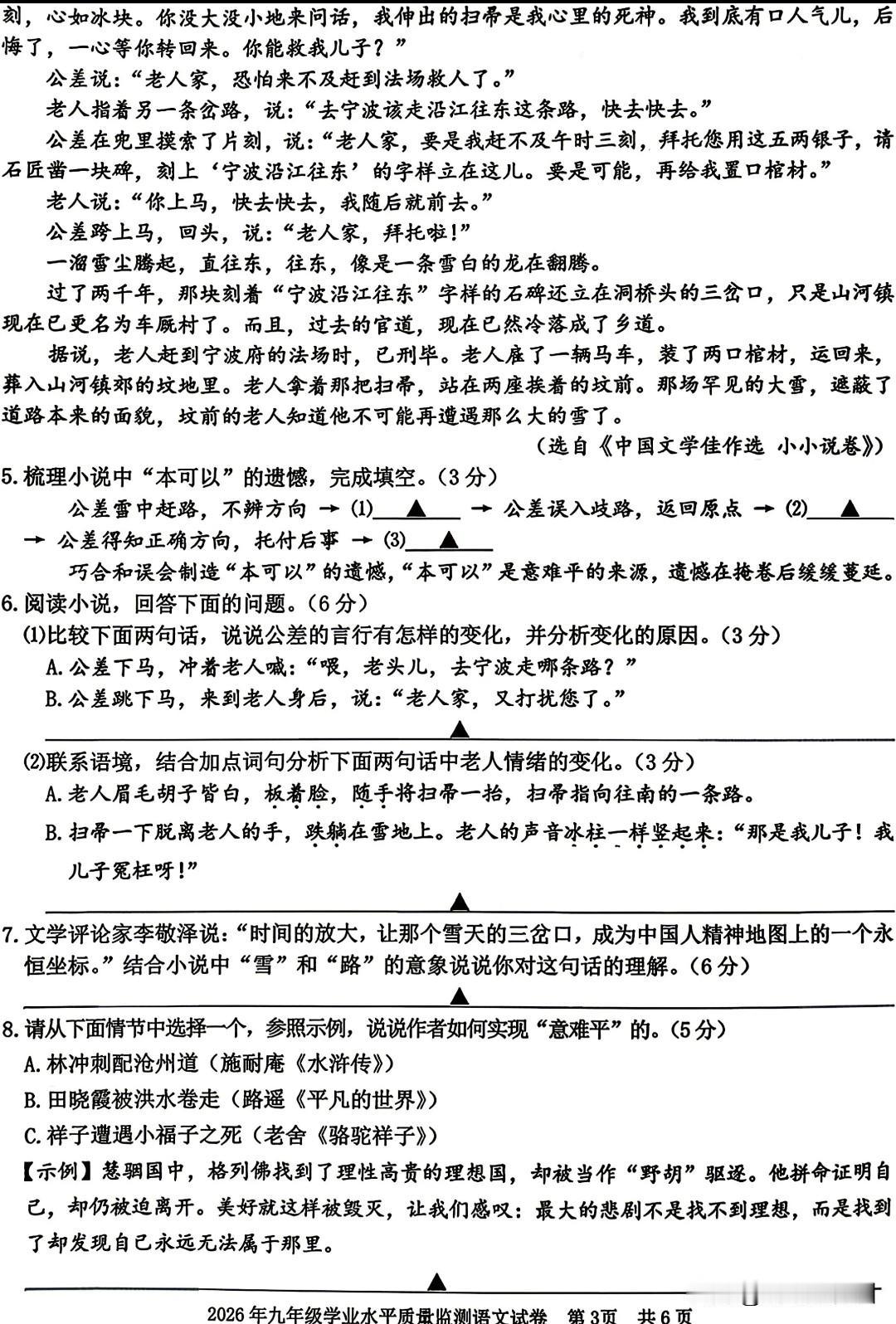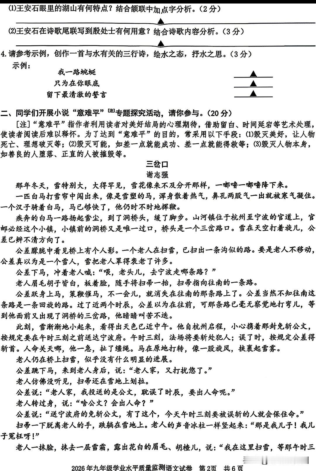 2026/4/23宁波中考一模语文试卷及参考答案来啦!有需要的孩子可以打印出来练