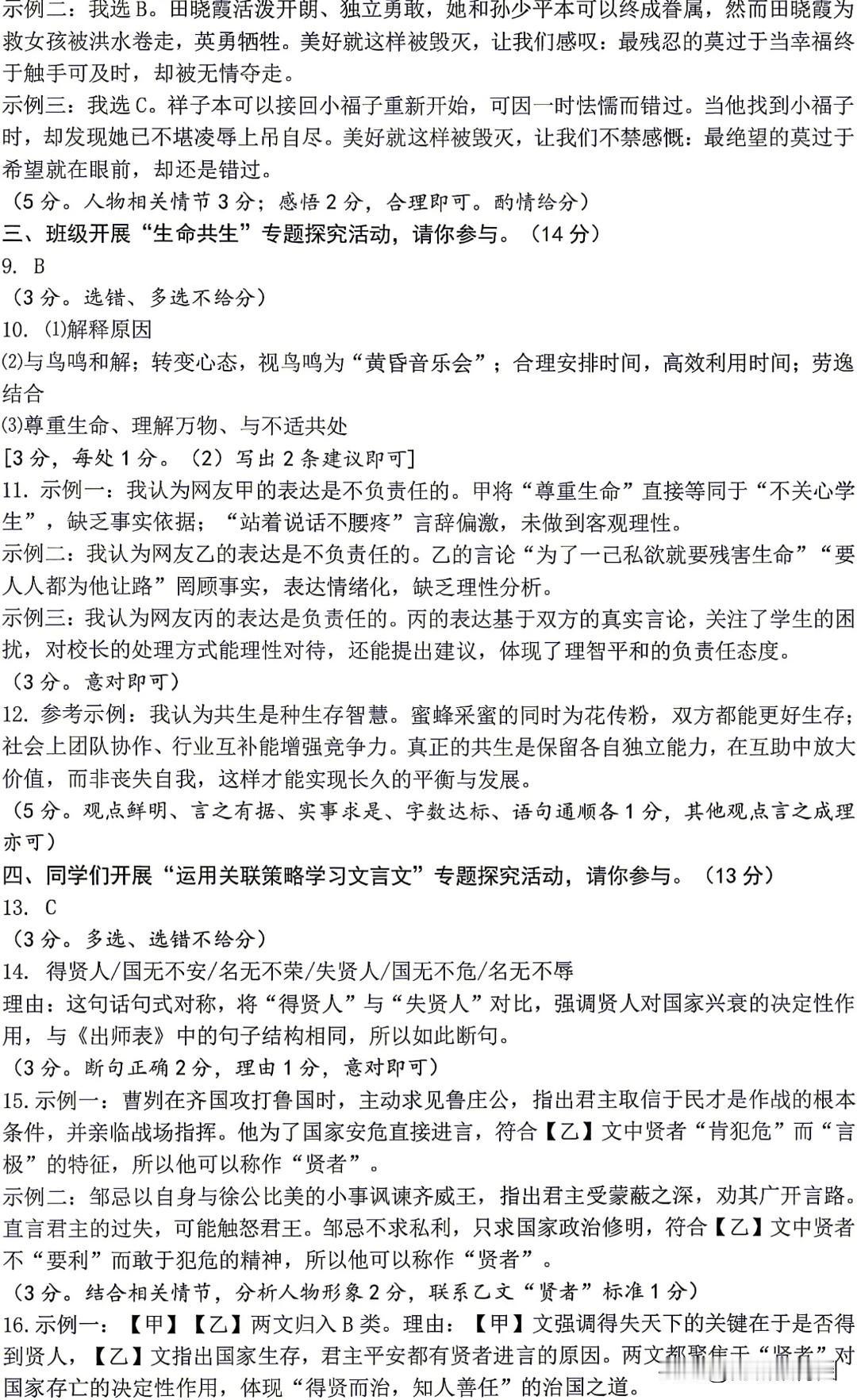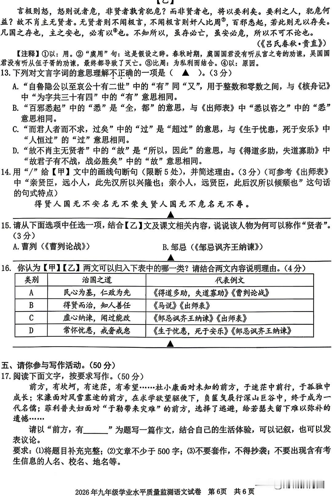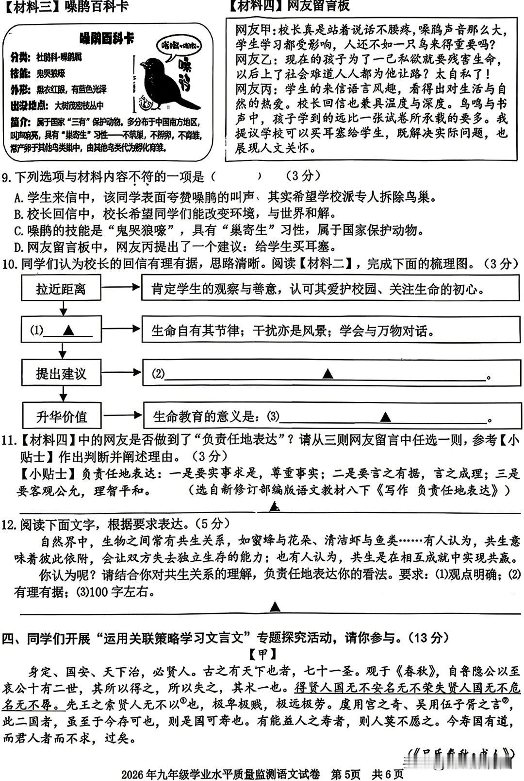 2026/4/23宁波中考一模语文试卷及参考答案来啦!有需要的孩子可以打印出来练