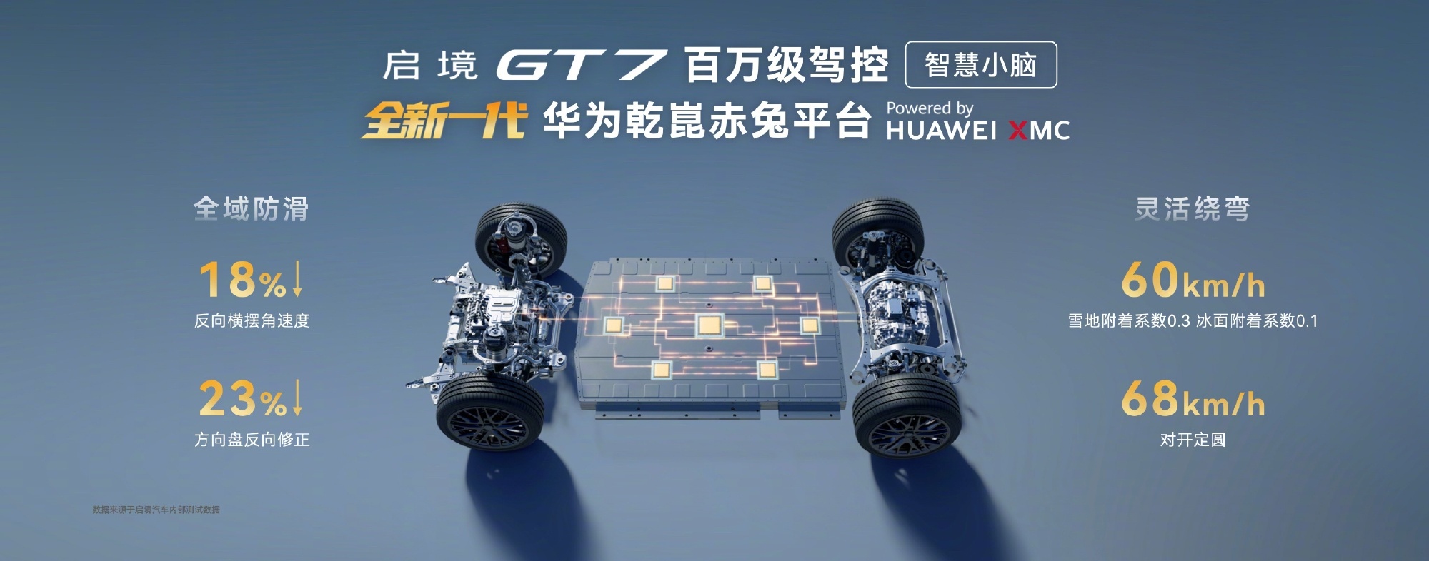 精简版启境GT7首发华为乾崑赤兔平台启境GT7正式亮相,作为华为乾崑新一代智能化技术首发车型,打造“一车即乾崑”,定义未来出行智能体。启境由华为乾崑与广汽联合打造,原生融合前瞻技术,智能化直接拉满百万级水准。新车搭载新一代鸿蒙座舱与小艺智能体,交互更具温度;全系标配华为乾崑ADS 5、896线激光雷达,搭配CAS 5.0全维防碰撞、车位到车位3.0,安全冗余充足,支持后续高阶智驾升级。首发乾崑赤兔平台+HUAWEI XMC 3.0数字底盘,三电机搭配闭式双腔空悬,兼顾操控与稳定性。整车集齐华为全套前沿技术,可持续迭代进化,打造真正的未来智能座驾。