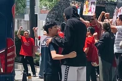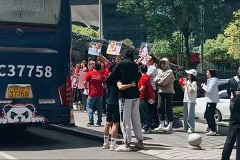 前方,有球迷曝出现场照片。坎贝奇穿着拖鞋,拥抱李缘送她登车。现场还有不少球迷送行,看样子她无法随队亲征。