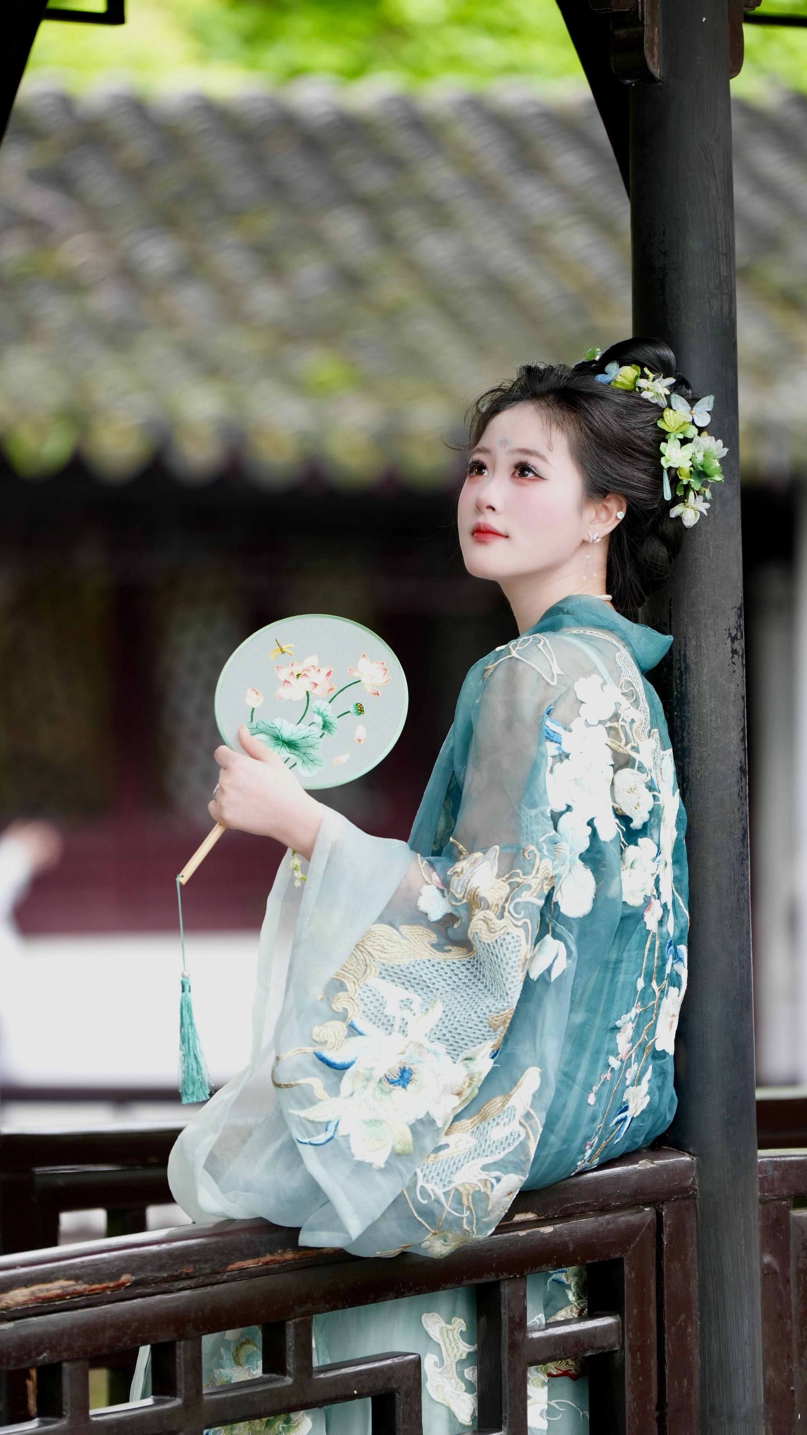 借一抹青黛色,晕染江南的温柔。苏州园林约拍汉服写真模特汉服美人漂亮小姐姐 苏州