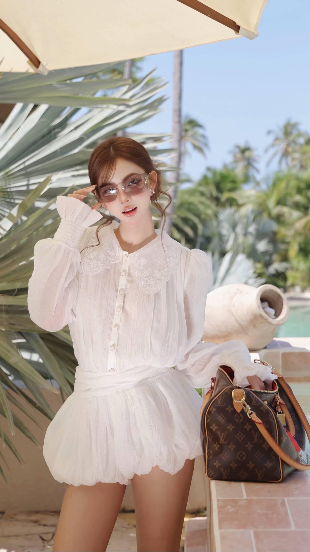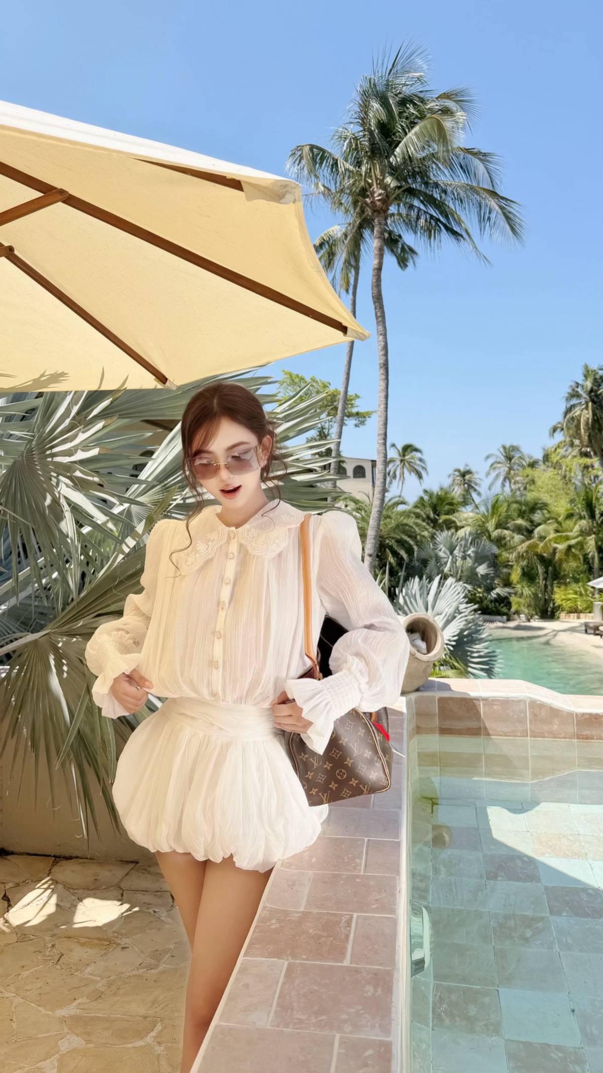 松弛又浪漫,这样的穿搭超美!浅蓝衬衫配卡其半裙,白无袖搭棕短裤,或是亮色块撞出