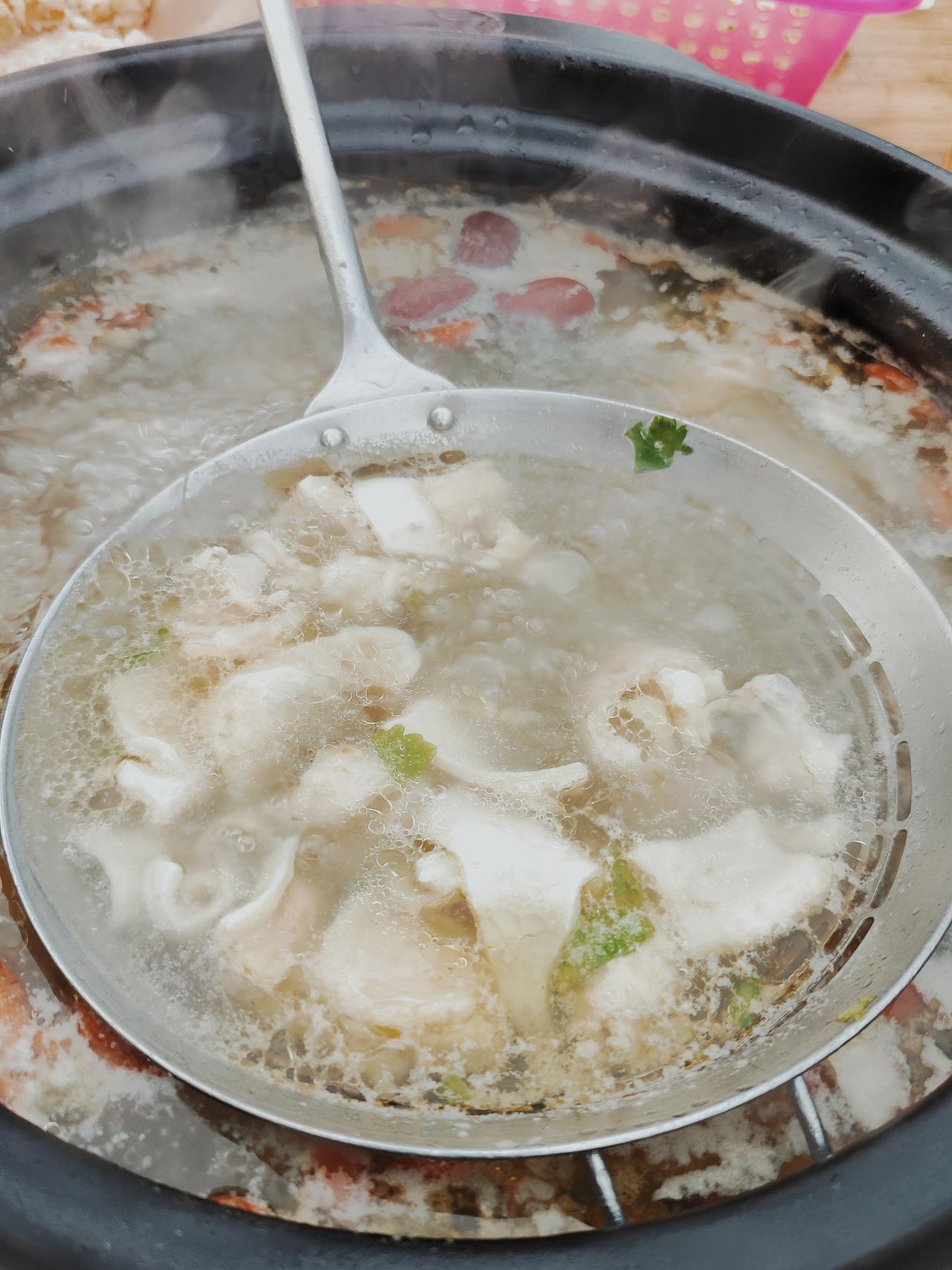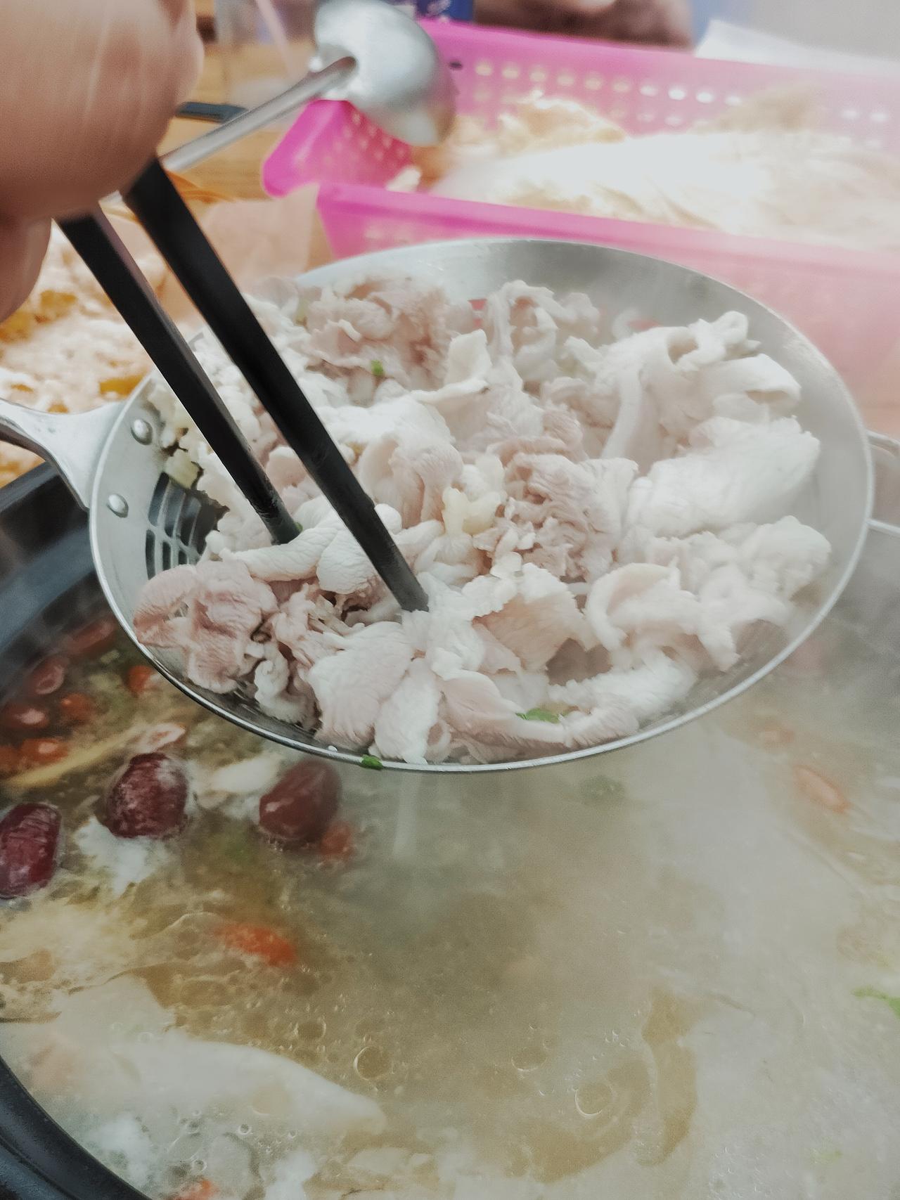 创新土鸡火锅还是很值得一试的,鸡皮超级脆弹,鸡肉片得很薄,烫一烫就熟了,还有椒盐鸡架鸡骨头,服务员超多,帮忙涮肉。这是家网红店,楼上楼下加路边有400桌,旁边还有周边特产店,吃完火锅还能吃免费的牛奶小冰棒,吃得很舒服!创意土鸡火锅 汕头晚上吃什么