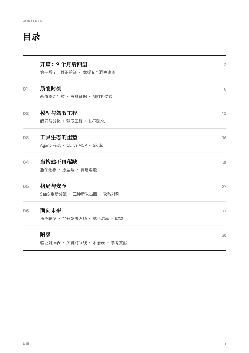 一份腾讯研究院的AI Coding 观察报告网页链接“2025 年 7 月,我们发布第一版《AI Coding 非共识报告》,用“AI 透镜”对准这个行业最快的变量,留下了一个判断:AI Coding 是通用 Agent 的先验战场,也是“丰饶时代”的第一块试验田。9 个月过去,许多当时被称为“非共识”的判断,已经成了共识;而真正的非共识,又迁移到了新的位置。在这 9 个月里:Claude Opus 从 4.1 走到 4.7,SWE-bench Verified 从 74% 跳到 87.6% 并被新的编程评测取代;Cursor 估值从 293 亿美元谈到 500 亿美元;Claude Code 收入从零增长到 25 亿美元;METR 那个著名的“AI 让开发者慢 19%”的实验结果,在后续实验里逆转为快 18%;YC W2025 批次里,25% 的创业公司 95% 以上的代码由 AI 生成。进入 2026 年第一季度,变量的数量和速度都超过了我们自己去年的预期。于是我们决定刷新对 AI Coding 的观察:站在 9 个月后,重新看那 7 条非共识现在验证到了哪里;再把 9 个月里真正让我们震动的东西,提炼成 6 个结构性洞察。这便是 《丰饶之后:AI Coding 观察报告 2.0》。”