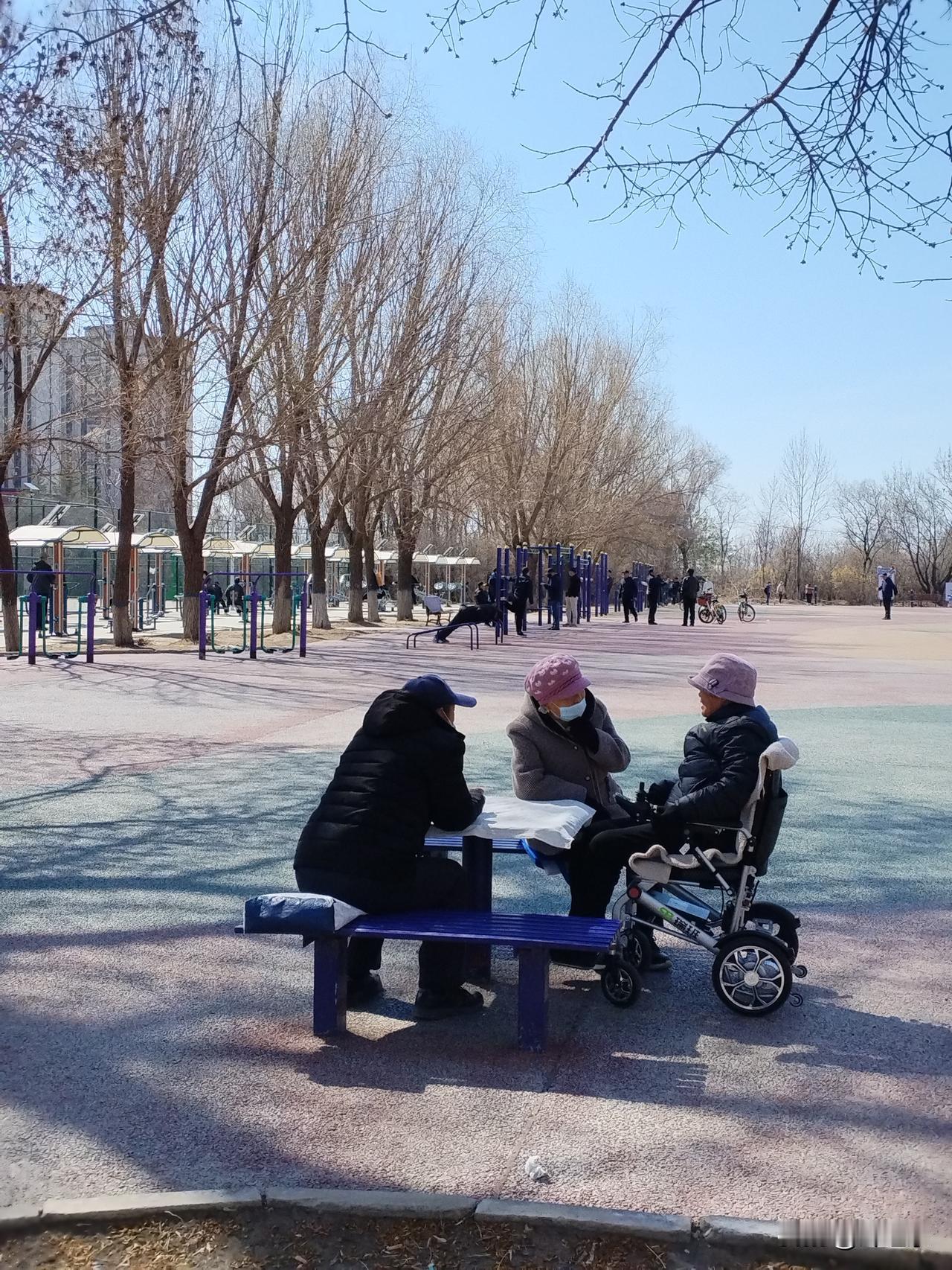 尽管已是深春,气温仍然较低。但这些都阻挡不了人们娱乐的热情。石桌石凳上,坐满了打扑克的老人。