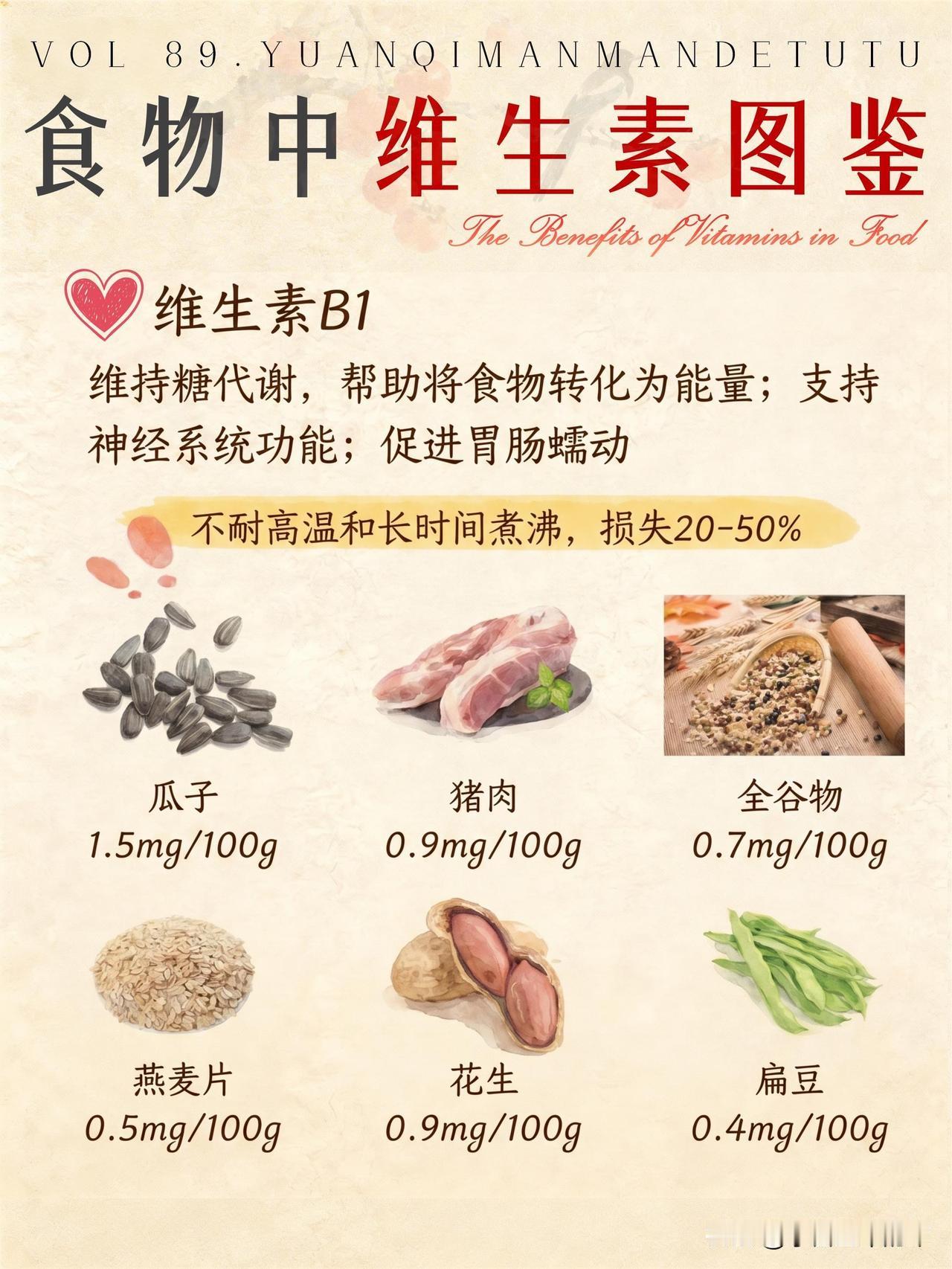 B1是帮我们把食物变成能量的关键,瓜子、猪肉里都不少,可煮太久会损失一半,所以粗粮别煮得稀烂,保留点嚼劲更好。
