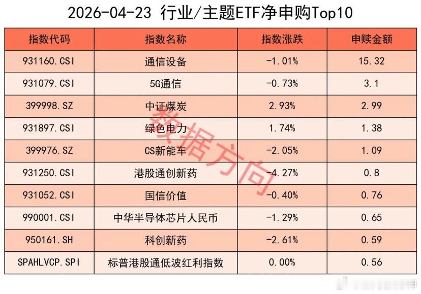 通信设备指数(15.32亿)、5G通信指数(3.1亿),一起进入申购榜。