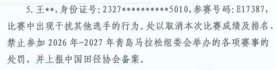 组委会给出原因:赛道跳绳干扰其他选手,违反田协规则和赛事规程!