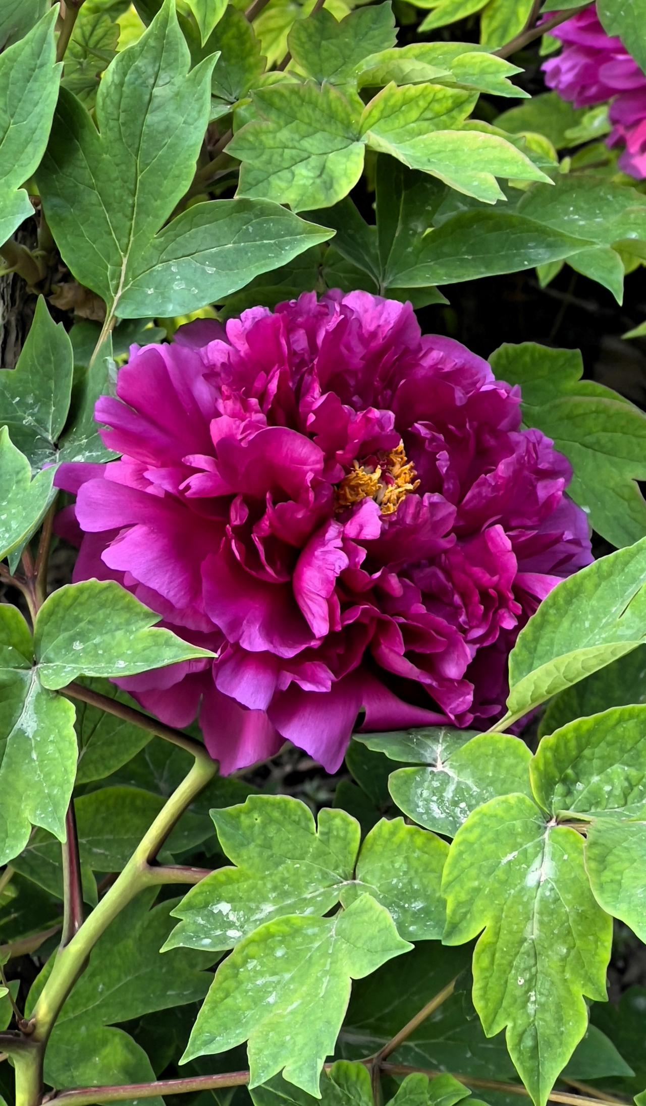 手机中的美图晒一晒分享美丽的花朵:紫色的牡丹花绽放在绿叶之间,美不胜收!晒图笔记大赛