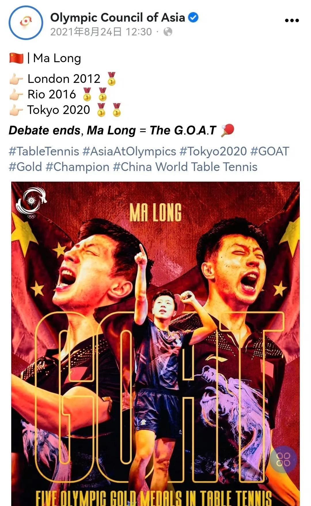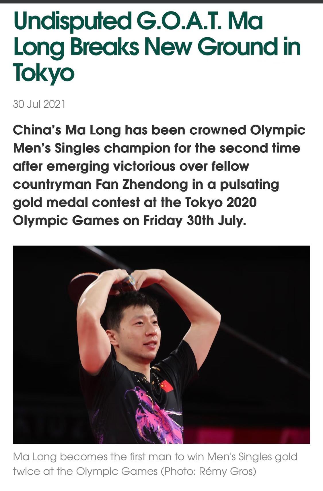 国际乒联再次认证了马龙的乒坛地位,历史第一,毋庸置疑的