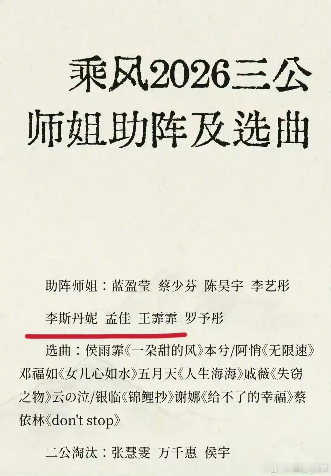 乘风2026/浪姐7·三公帮唱嘉宾(持续更新)浪姐7/师姐帮唱名单(持续更新)1